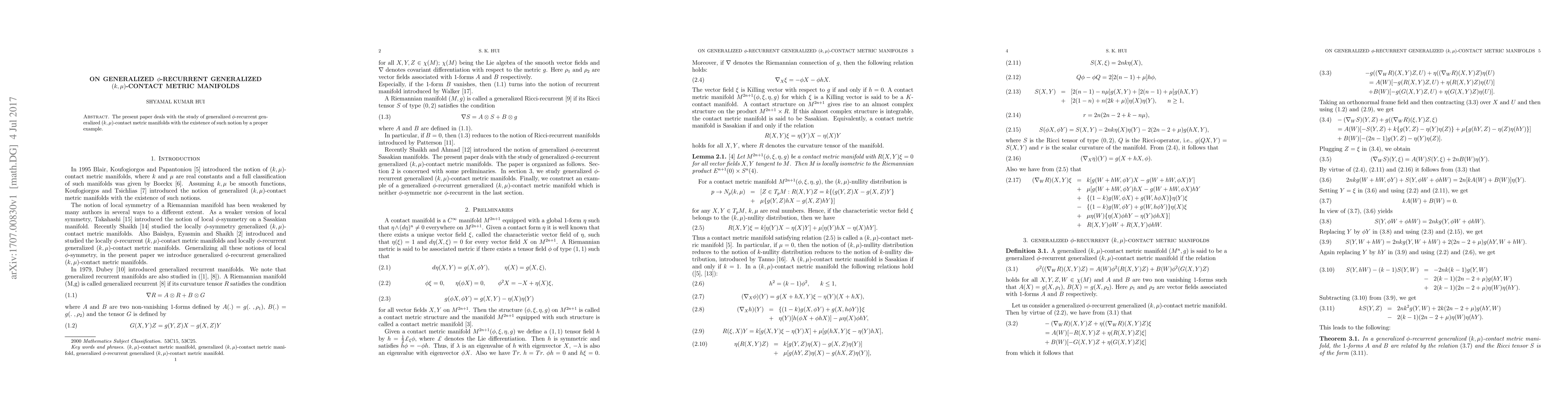 Summary: This paper investigates generalized $\phi$-recurrent generalized $(k, \mu)$-contact metric manifolds and provides a specific example to illustrate the existence of this concept. It aims to deepen the understanding of this specialized area of differential geometry.