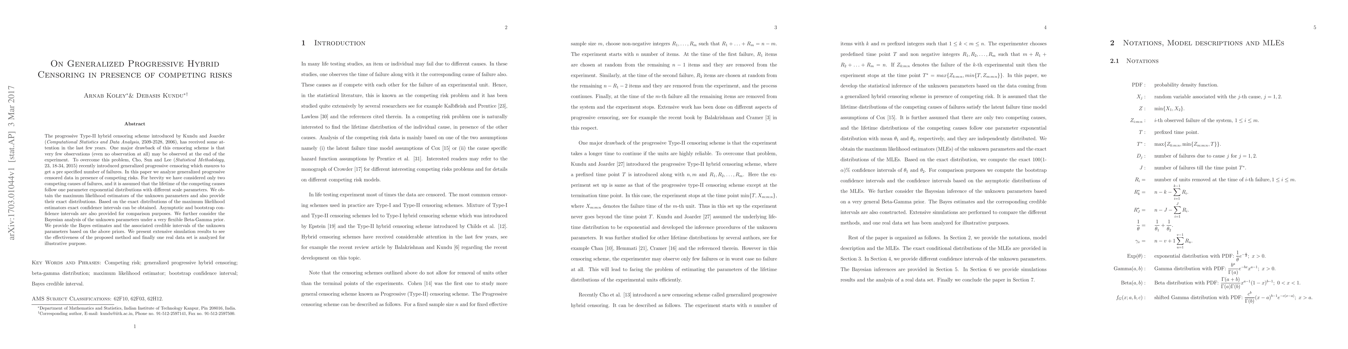 The progressive Type-II hybrid censoring scheme introduced by Kundu and Joarder (\textit{Computational Statistics and Data Analysis}, 2509-2528, 2006), has received some attention in the last few years. One major drawback of this censoring scheme is that very few observations (even no observation at all) may be observed at the end of the experiment. To overcome this problem, Cho, Sun and Lee (\textit{Statistical Methodology}, 23, 18-34, 2015) recently introduced generalized progressive censoring which ensures to get a pre specified number of failures. In this paper we analyze generalized progressive censored data in presence of competing risks. For brevity we have considered only two competing causes of failures, and it is assumed that the lifetime of the competing causes follow one parameter exponential distributions with different scale parameters. We obtain the maximum likelihood estimators of the unknown parameters and also provide their exact distributions. Based on the exact distributions of the maximum likelihood estimators exact confidence intervals can be obtained. Asymptotic and bootstrap confidence intervals are also provided for comparison purposes. We further consider the Bayesian analysis of the unknown parameters under a very flexible Beta-Gamma prior. We provide the Bayes estimates and the associated credible intervals of the unknown parameters based on the above priors. We present extensive simulation results to see the effectiveness of the proposed method and finally one real data set is analyzed for illustrative purpose.