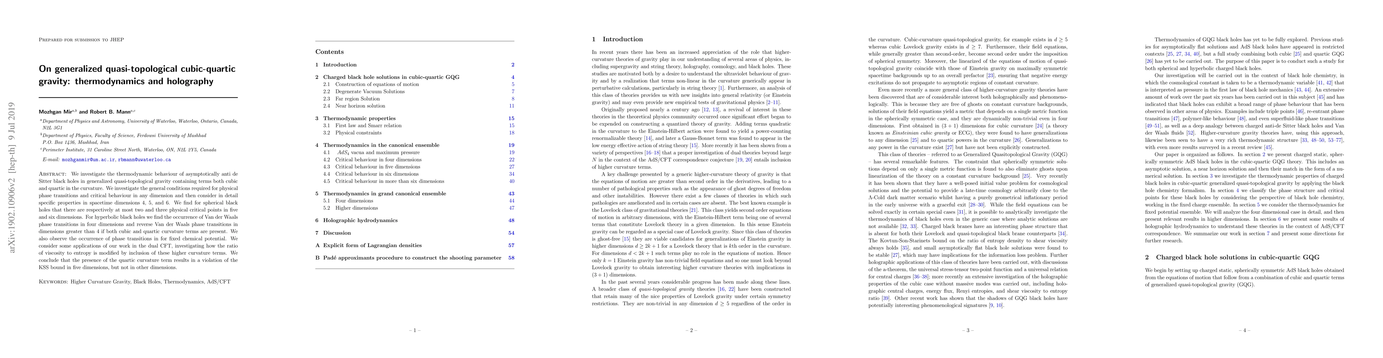 We investigate the thermodynamic behaviour of asymptotically anti de Sitter black holes in generalized quasi-topological gravity containing terms both cubic and quartic in the curvature. We investigate the general conditions required for physical phase transitions and critical behaviour in any dimension and then consider in detail specific properties in spacetime dimensions 4, 5, and 6. We find for spherical black holes that there are respectively at most two and three physical critical points in five and six dimensions. For hyperbolic black holes we find the occurrence of Van der Waals phase transitions in four dimensions and reverse Van der Waals phase transitions in dimensions greater than 4 if both cubic and quartic curvature terms are present. We also observe the occurrence of phase transitions in for fixed chemical potential. We consider some applications of our work in the dual CFT, investigating how the ratio of viscosity to entropy is modified by inclusion of these higher curvature terms. We conclude that the presence of the quartic curvature term results in a violation of the KSS bound in five dimensions, but not in other dimensions.