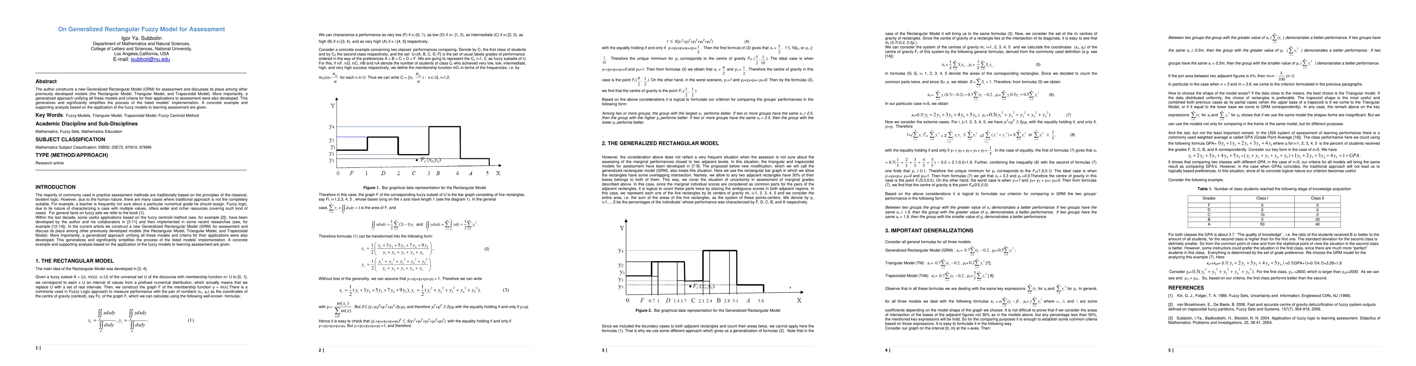 Summary: This paper analyzes current fuzzy logic centroid assessment models and introduces a new Generalized Rectangular Fuzzy Model, offering generalizations to improve existing assessment techniques.