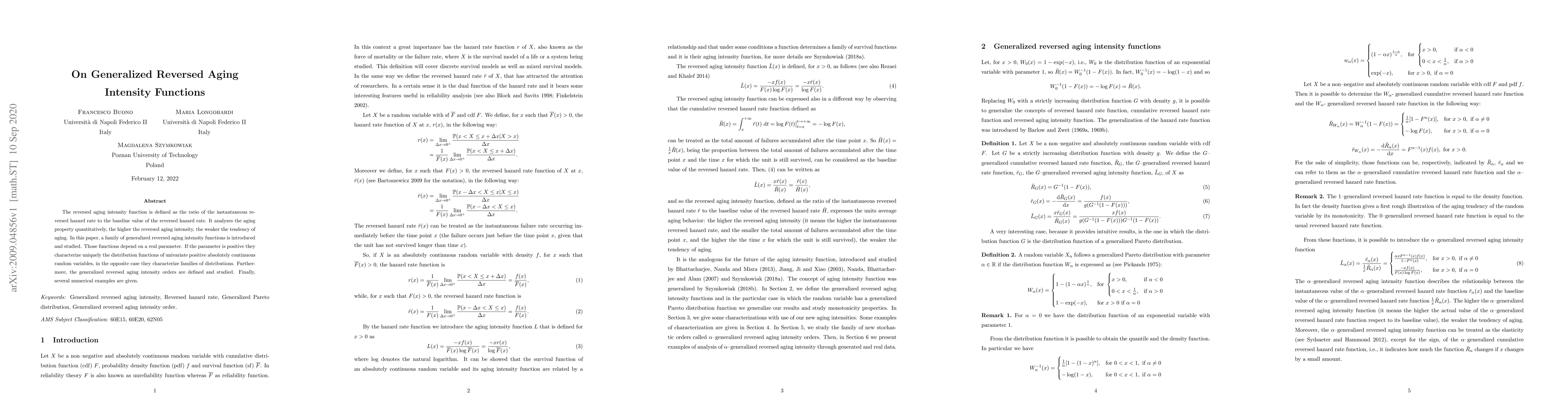A new family of generalized reversed aging intensity functions is introduced to analyze aging property quantitatively, which characterizes univariate distributions with a positive parameter and families of distributions otherwise.