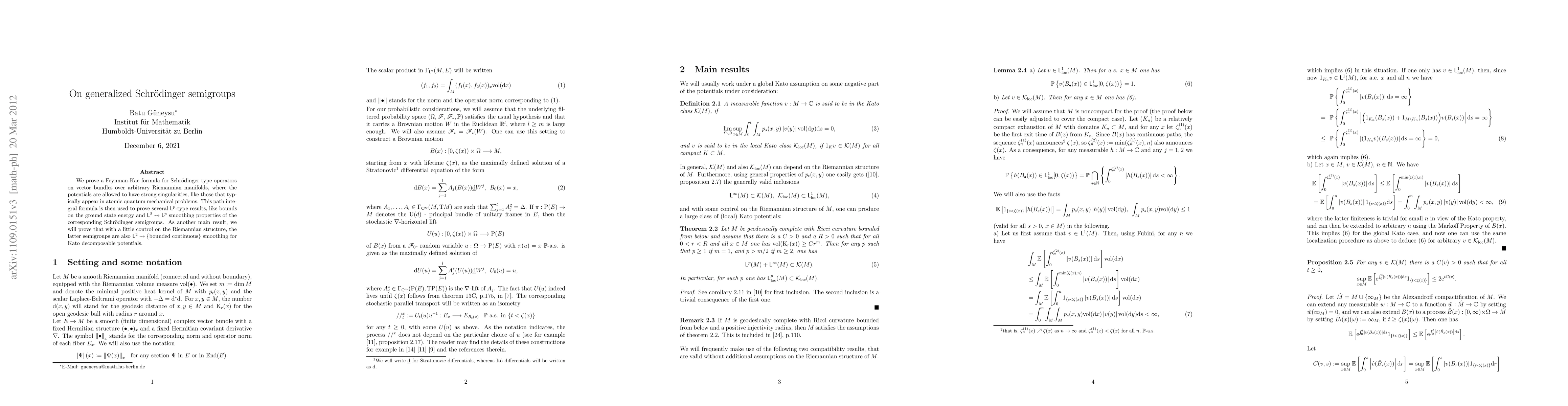 This paper extends the Feynman-Kac formula to Schrödinger operators on noncompact Riemannian manifolds with singular potentials, proving L^p-type results and smoothing properties for the corresponding Schrödinger semigroups, including applications to magnetic Schrödinger operators.