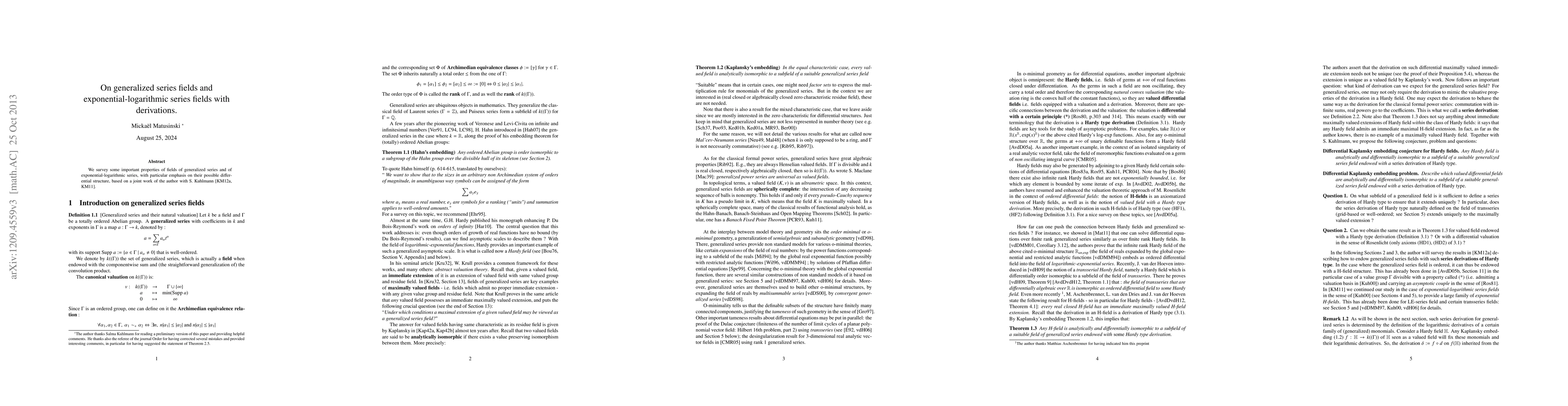 This paper surveys key properties of generalized series fields and exponential-logarithmic series fields, focusing on their potential differential structures, with contributions from joint work with S. Kuhlmann. The study highlights the implications of these fields in the context of derivations.