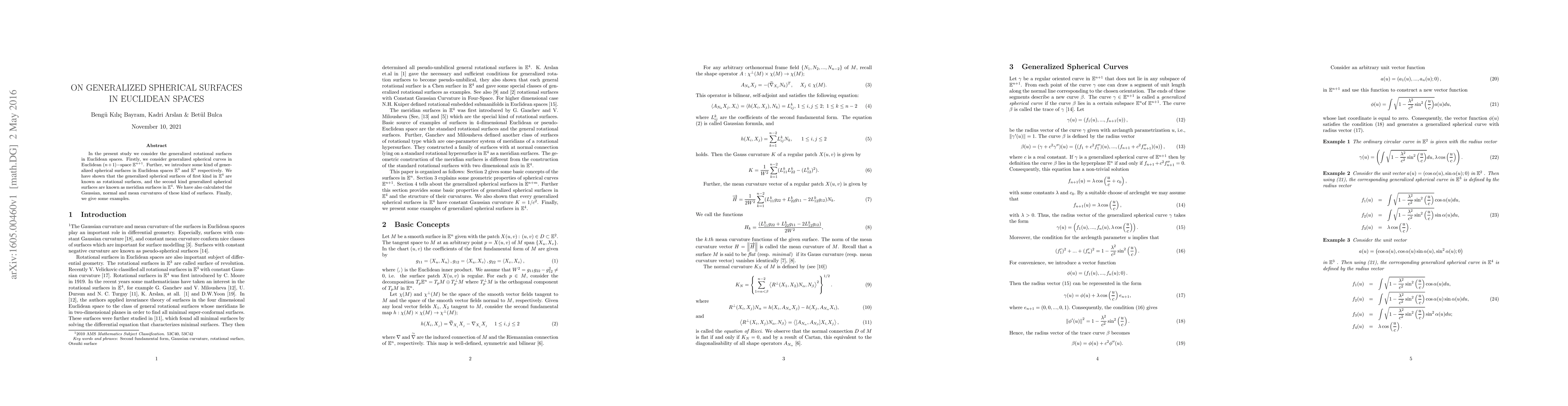 This paper explores generalized rotational surfaces in Euclidean spaces, focusing on generalized spherical curves in $\mathbb{E}^{n+1}$ and surfaces in $\mathbb{E}^{3}$ and $\mathbb{E}^{4}$. It classifies and calculates curvatures for first-kind rotational and second-kind meridian surfaces in $\mathbb{E}^{4}$, providing examples.