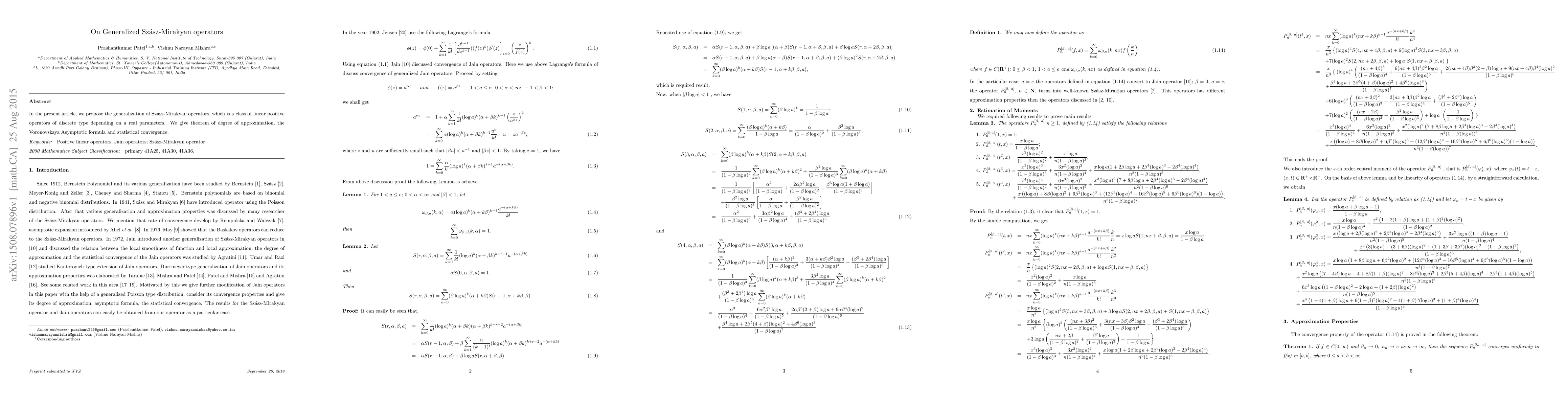 In the present article, we propose the generalization of Sz\'{a}sz-Mirakyan operators, which is a class of linear positive operators of discrete type depending on a real parameters. We give theorem of degree of approximation, the Voronovskaya Asymptotic formula and statistical convergence.