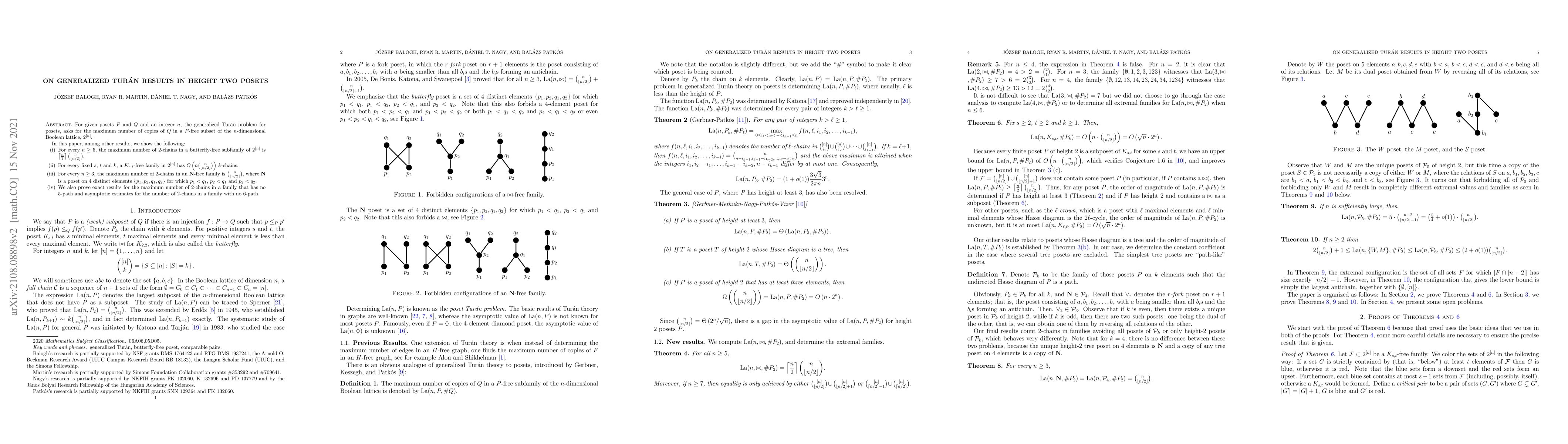This paper investigates generalized Turán problems for height two posets within the $n$-dimensional Boolean lattice. It establishes the maximum number of $2$-chains in various poset-free subsets, including butterfly-free, $K_{s,t}$-free, and $\textbf{N}$-free families, and provides exact and asymptotic results for families without $5$-paths and $6$-paths.