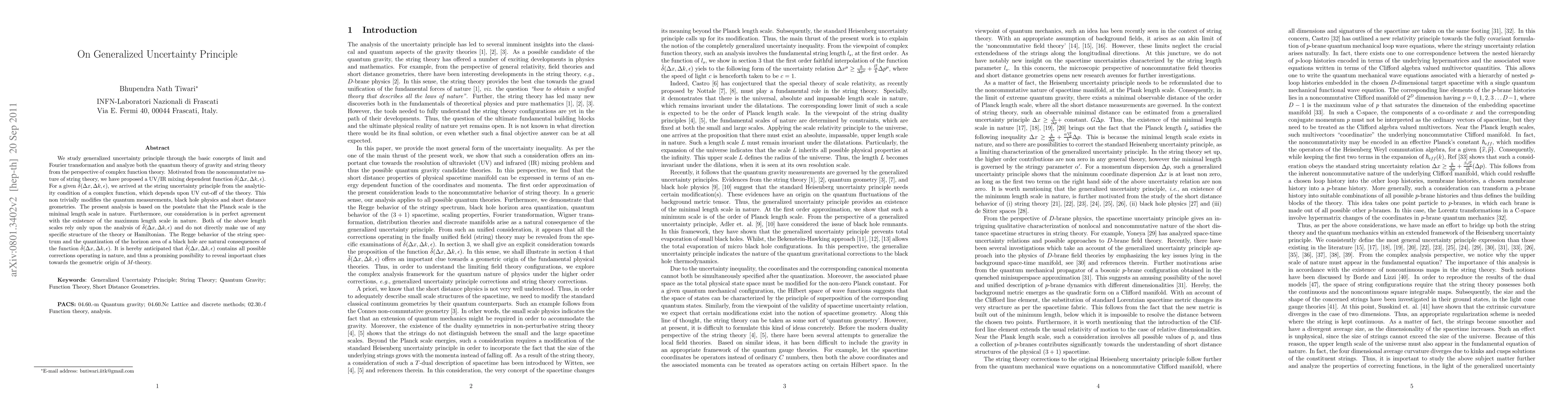 This paper proposes a generalized uncertainty principle based on a function $ ilde{ heta}( heta) $ that affects quantum measurements, black hole physics, and short distance geometries, potentially revealing clues to the geometric origin of M-theory.