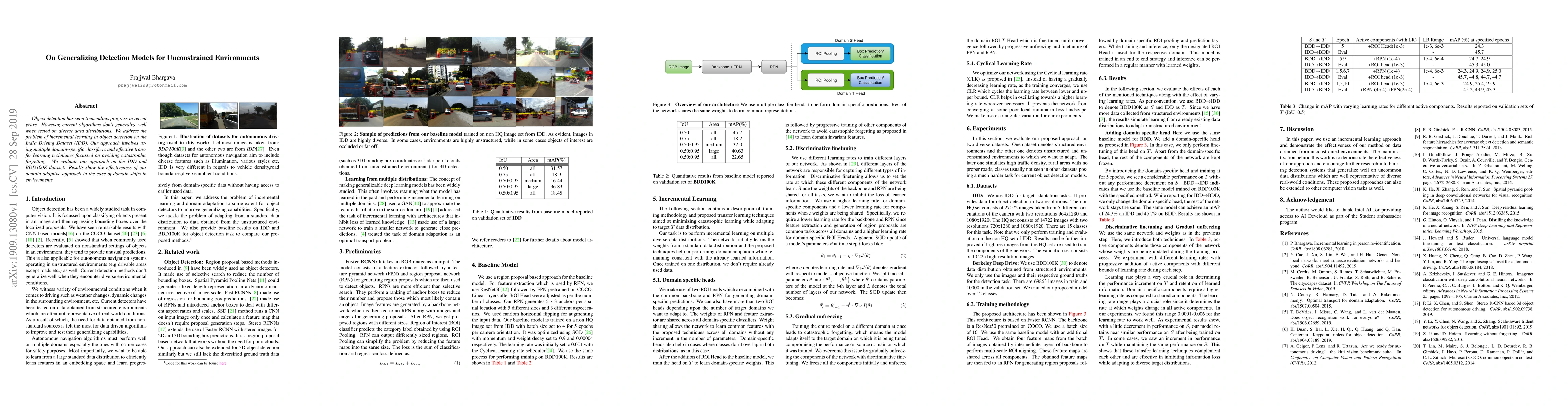 Object detection has seen tremendous progress in recent years. However, current algorithms don't generalize well when tested on diverse data distributions. We address the problem of incremental learning in object detection on the India Driving Dataset (IDD). Our approach involves using multiple domain-specific classifiers and effective transfer learning techniques focussed on avoiding catastrophic forgetting. We evaluate our approach on the IDD and BDD100K dataset. Results show the effectiveness of our domain adaptive approach in the case of domain shifts in environments.