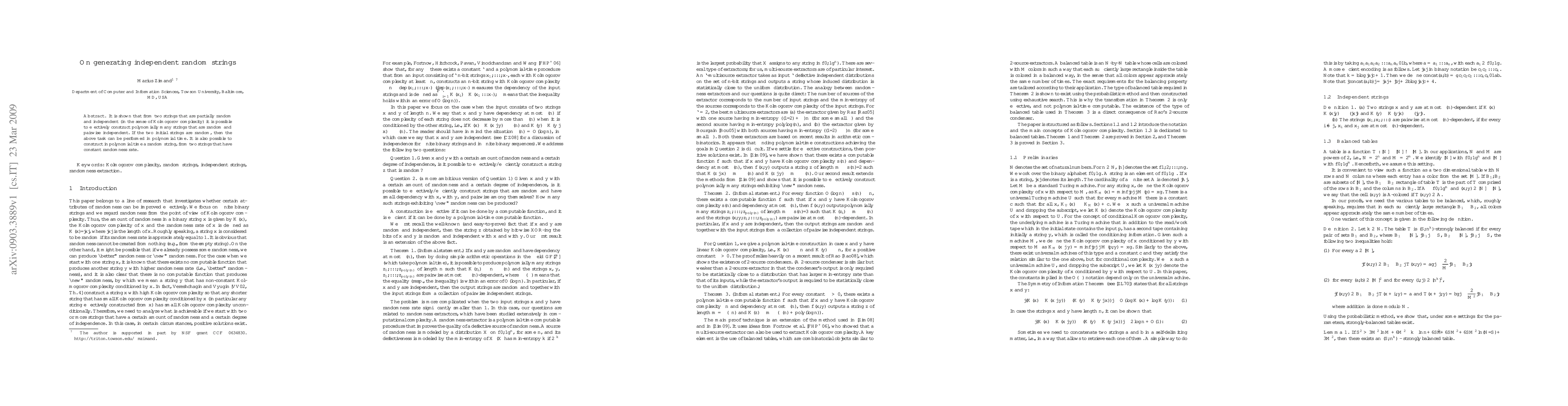 It is shown that from two strings that are partially random and independent (in the sense of Kolmogorov complexity) it is possible to effectively construct polynomially many strings that are random and pairwise independent. If the two initial strings are random, then the above task can be performed in polynomial time. It is also possible to construct in polynomial time a random string, from two strings that have constant randomness rate.
