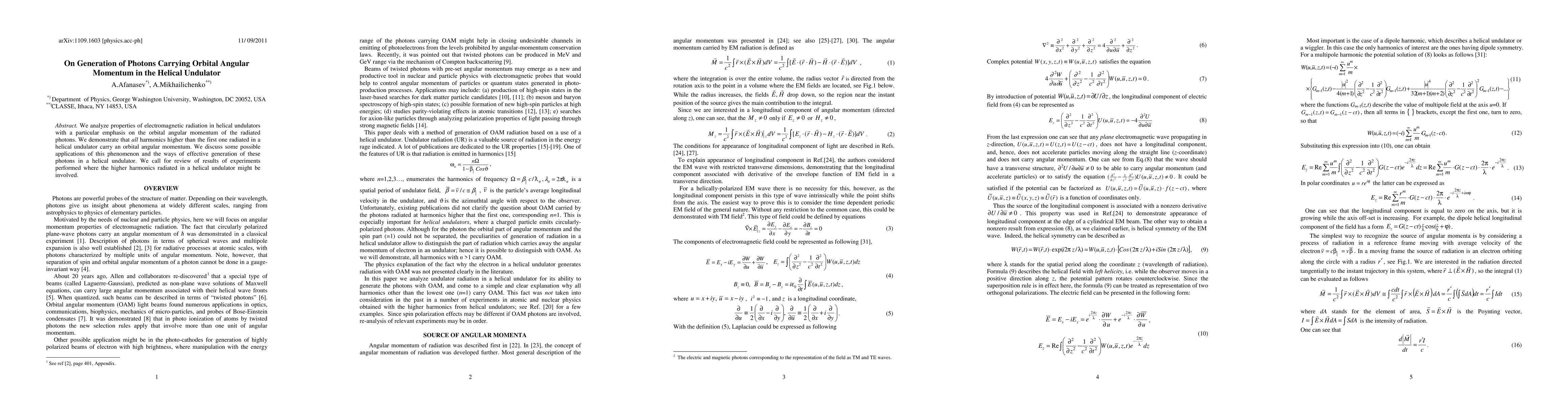 This paper investigates the generation of photons with orbital angular momentum in helical undulators, demonstrating that higher harmonics beyond the first carry this angular momentum. It explores potential applications and methods for effective photon generation in such undulators, urging a reevaluation of relevant experimental results.