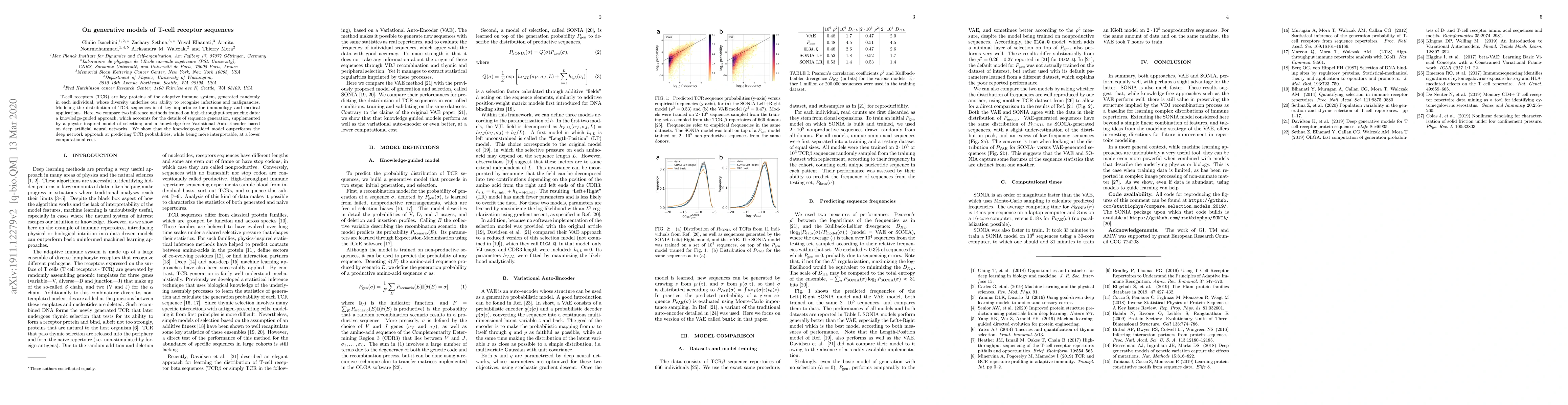 T-cell receptors (TCR) are key proteins of the adaptive immune system, generated randomly in each individual, whose diversity underlies our ability to recognize infections and malignancies. Modeling the distribution of TCR sequences is of key importance for immunology and medical applications. Here, we compare two inference methods trained on high-throughput sequencing data: a knowledge-guided approach, which accounts for the details of sequence generation, supplemented by a physics-inspired model of selection; and a knowledge-free Variational Auto-Encoder based on deep artificial neural networks. We show that the knowledge-guided model outperforms the deep network approach at predicting TCR probabilities, while being more interpretable, at a lower computational cost.