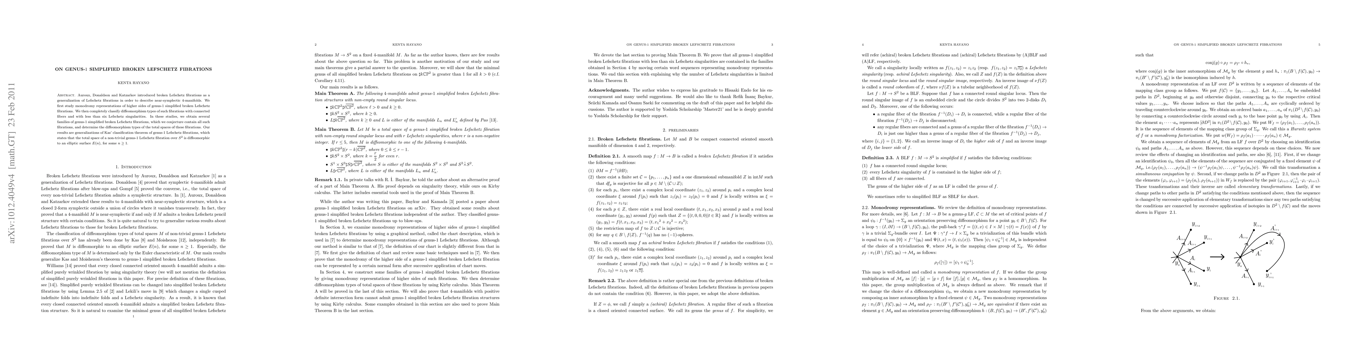 This paper classifies genus-1 simplified broken Lefschetz fibrations with connected fibers and fewer than six Lefschetz singularities, obtaining several families that likely encompass all such fibrations. It generalizes Kas' classification theorem for genus-1 Lefschetz fibrations by determining the diffeomorphism types of the total spaces of these fibrations.