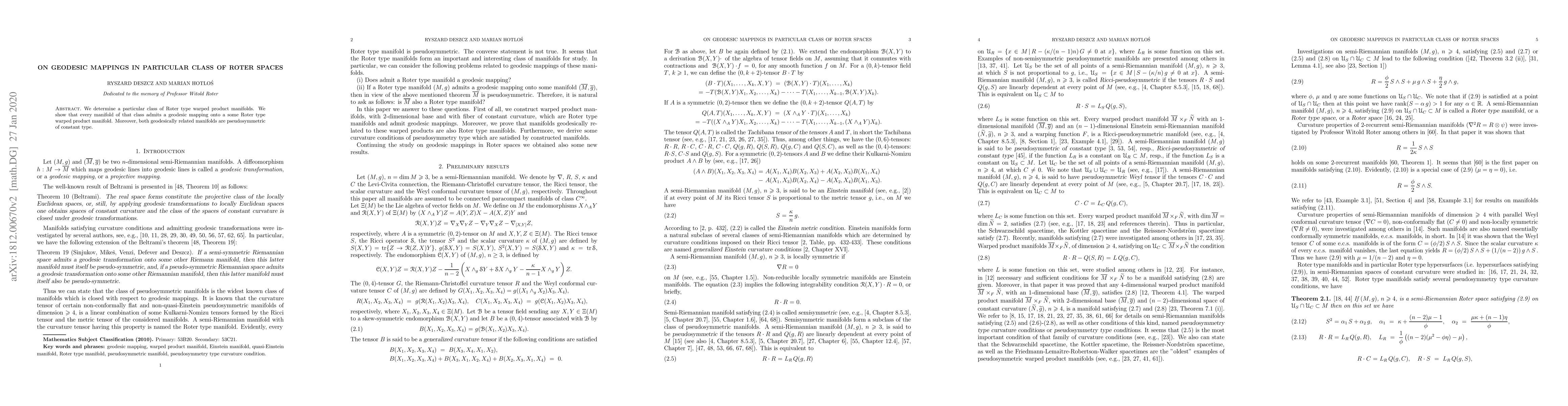 We determine a particular class of Roter type warped product manifolds. We show that every manifold of that class admits a geodesic mapping onto a some Roter type warped product manifold. Moreover, both geodesically related manifolds are pseudosymmetric of constant type.