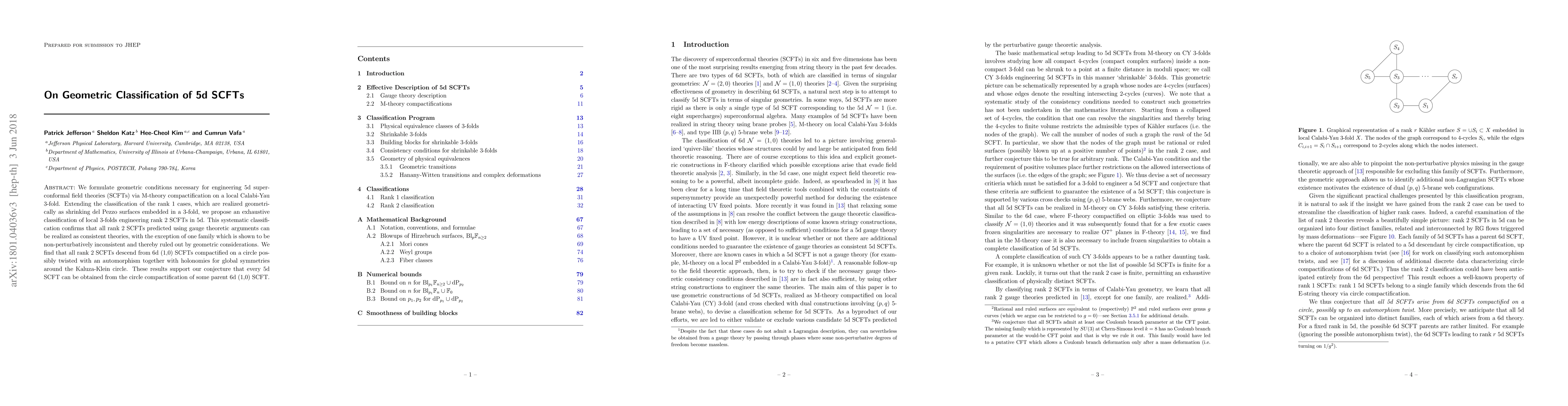 We formulate geometric conditions necessary for engineering 5d superconformal field theories (SCFTs) via M-theory compactification on a local Calabi-Yau 3-fold. Extending the classification of the rank 1 cases, which are realized geometrically as shrinking del Pezzo surfaces embedded in a 3-fold, we propose an exhaustive classification of local 3-folds engineering rank 2 SCFTs in 5d. This systematic classification confirms that all rank 2 SCFTs predicted using gauge theoretic arguments can be realized as consistent theories, with the exception of one family which is shown to be non-perturbatively inconsistent and thereby ruled out by geometric considerations. We find that all rank 2 SCFTs descend from 6d (1,0) SCFTs compactified on a circle possibly twisted with an automorphism together with holonomies for global symmetries around the Kaluza-Klein circle. These results support our conjecture that every 5d SCFT can be obtained from the circle compactification of some parent 6d (1,0) SCFT.