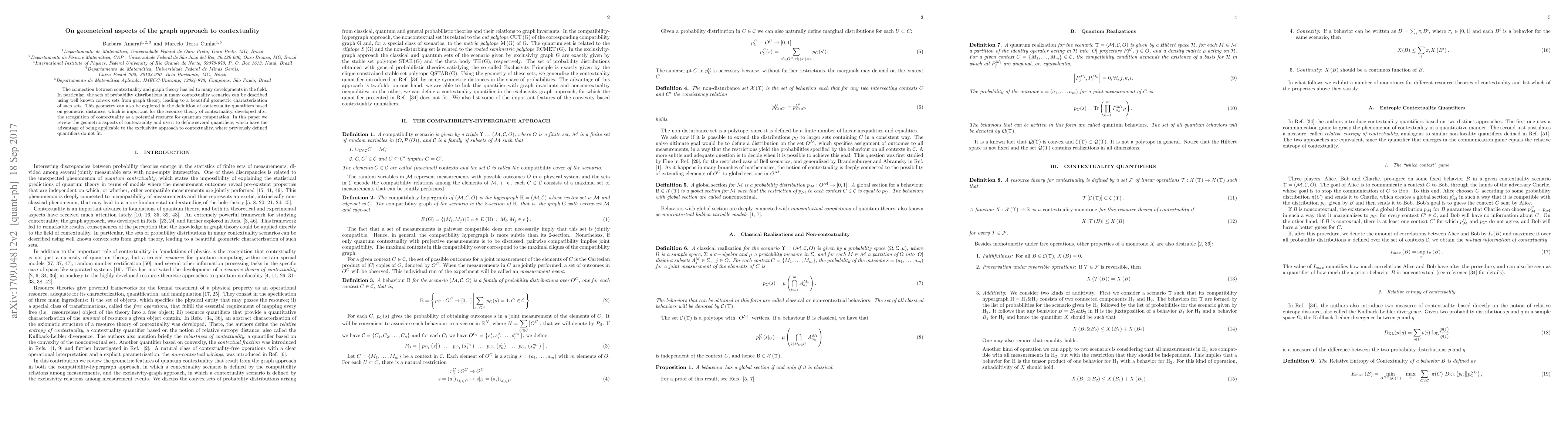 This paper reviews the geometrical aspects of contextuality in the context of graph theory, emphasizing the use of convex sets and geometric distances to define new contextuality quantifiers. These quantifiers offer advantages for the exclusivity approach to contextuality where previous methods fail.