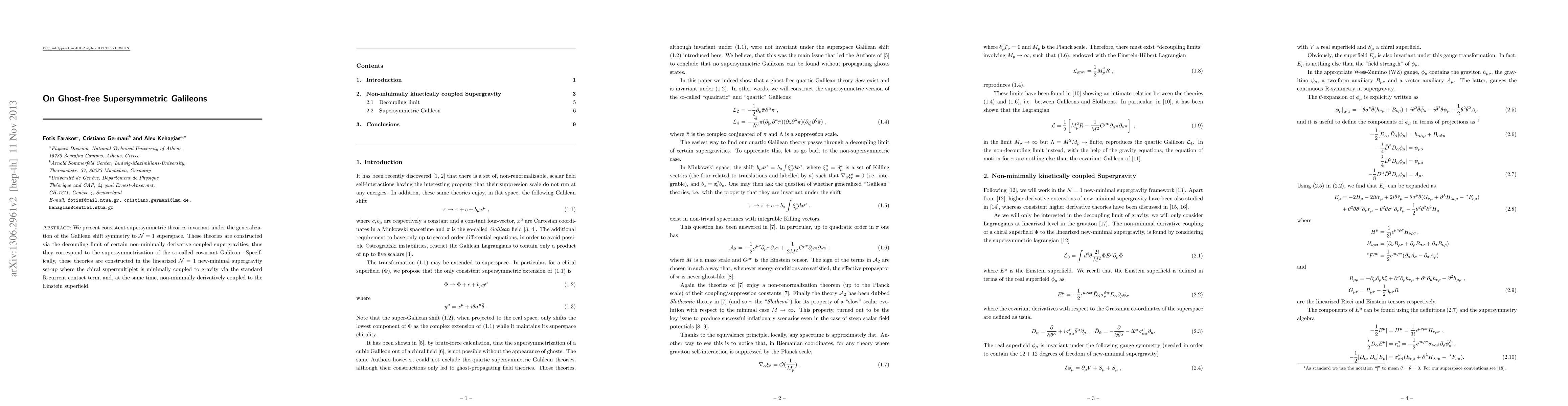 We present consistent supersymmetric theories invariant under the generalization of the Galilean shift symmetry to ${\cal{N}}=1$ superspace. These theories are constructed via the decoupling limit of certain non-minimally derivative coupled supergravities, thus they correspond to the supersymmetrization of the so-called covariant Galileon. Specifically, these theories are constructed in the linearized ${\cal{N}}=1$ new-minimal supergravity set-up where the chiral supermultiplet is minimally coupled to gravity via the standard R-current contact term, and, at the same time, non-minimally derivatively coupled to the Einstein superfield.