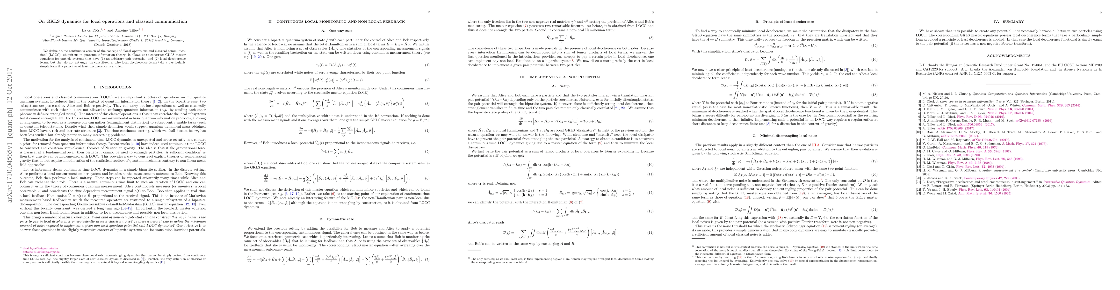 We define a time continuous version of the concept of "local operations and classical communication" (LOCC), ubiquitous in quantum information theory. It allows us to construct GKLS master equations for particle systems that have (1) an arbitrary pair potential, and (2) local decoherence terms, but that do not entangle the constituents. The local decoherence terms take a particularly simple form if a principle of least decoherence is applied.