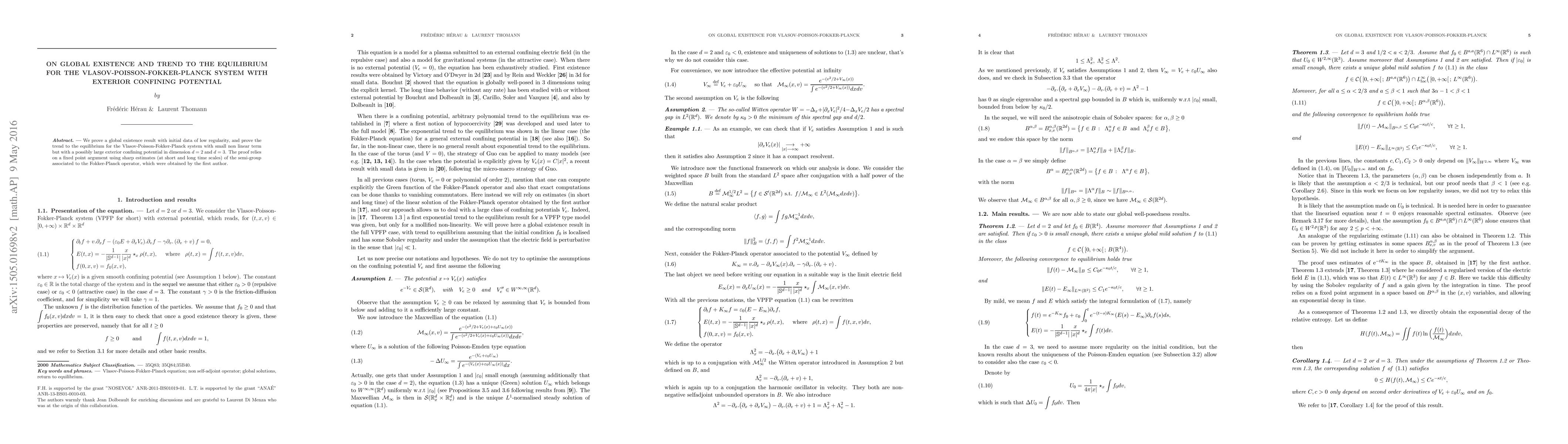 This paper establishes global existence and equilibrium convergence for the Vlasov-Poisson-Fokker-Planck system in dimensions 2 and 3, even with a large exterior potential, using a fixed point argument and sharp estimates of the Fokker-Planck operator.