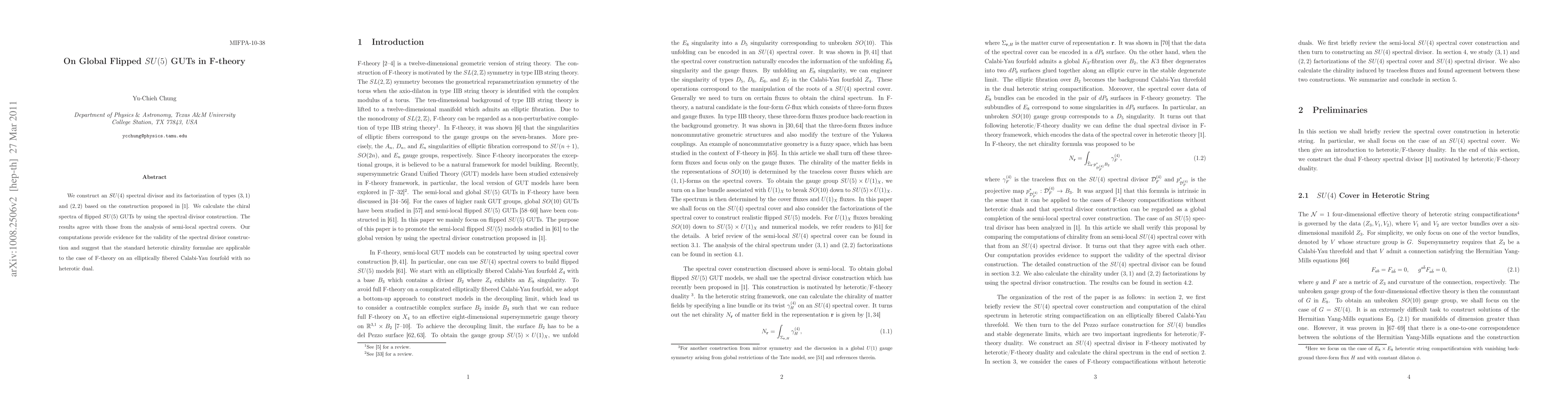 We construct an SU(4) spectral divisor and its factorization of types (3,1) and (2,2) based on the construction proposed in [1]. We calculate the chiral spectra of flipped SU(5) GUTs by using the spectral divisor construction. The results agree with those from the analysis of semi-local spectral covers. Our computations provide an example for the validity of the spectral divisor construction and suggest that the standard heterotic formulae are applicable to the case of F-theory on an elliptically fibered Calabi-Yau fourfold with no heterotic dual.