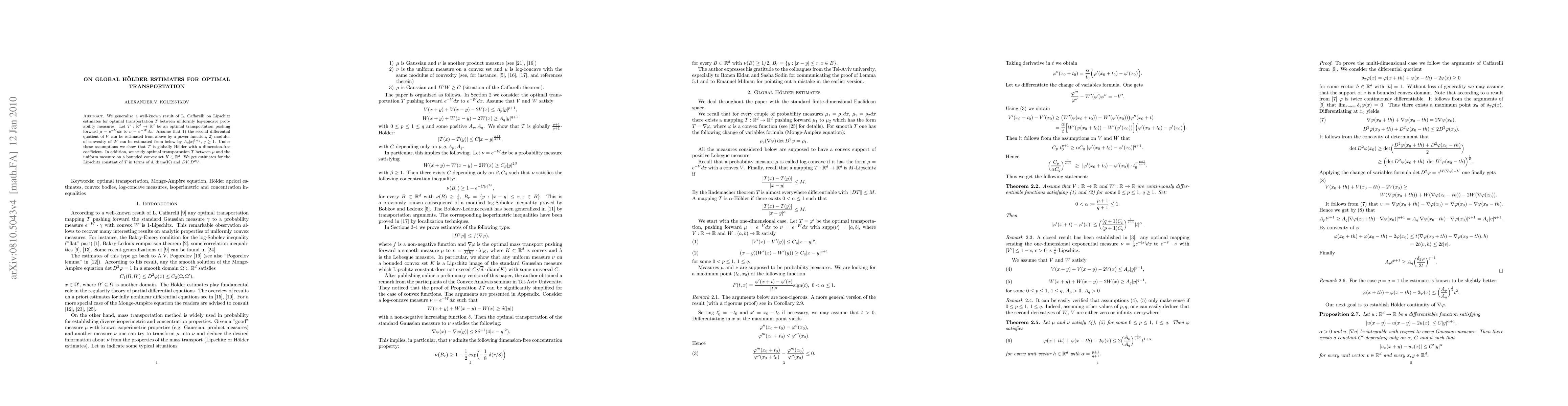 We generalize a well-known result of L. Caffarelli on Lipschitz estimates for optimal transportation $T$ between uniformly log-concave probability measures. Let $T : \R^d \to \R^d$ be an optimal transportation pushing forward $\mu = e^{-V}dx$ to $\nu = e^{-W}dx$. Assume that 1) the second differential quotient of $V$ can be estimated from above by a power function, 2) modulus of convexity of $W$ can be estimated from below by $A_q |x|^{1+q}$, $q \ge 1$. Under these assumptions we show that $T$ is globally H\"older with a dimension-free coefficient. In addition, we study optimal transportation $T$ between $\mu$ and the uniform measure on a bounded convex set $K \subset \R^d$. We get estimates for the Lipschitz constant of $T$ in terms of $d$, ${diam(K)}$ and $D V, D^2 V$.