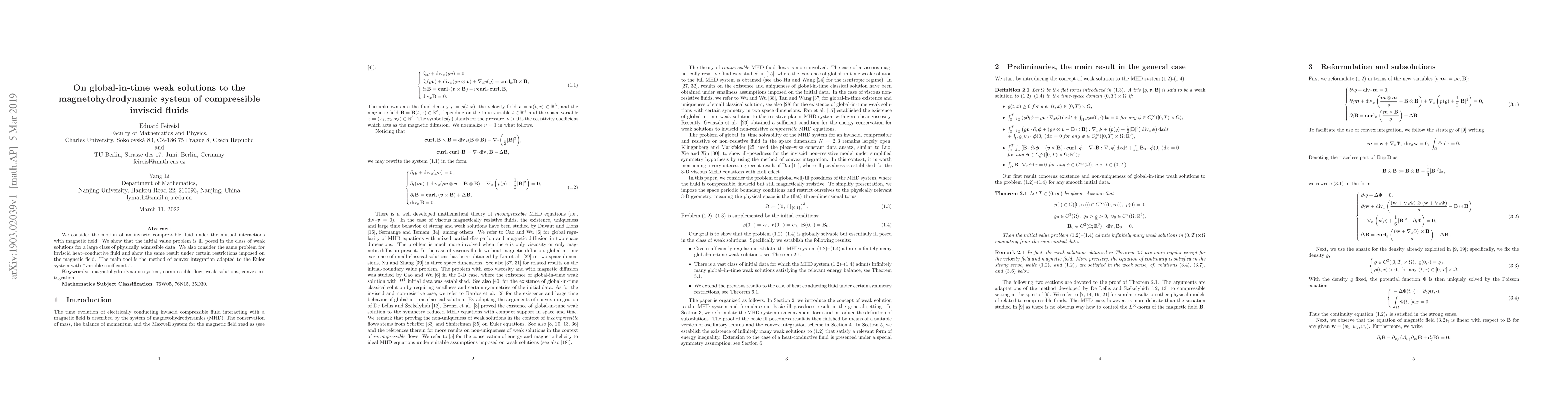 This paper investigates the global-in-time weak solutions for the magnetohydrodynamic system governing compressible inviscid fluids, demonstrating that the initial value problem is ill-posed within the class of weak solutions for a wide range of physically admissible data. The study also extends similar findings to inviscid heat-conductive fluids under specific magnetic field constraints, employing the convex integration method adapted to variable coefficient Euler systems.