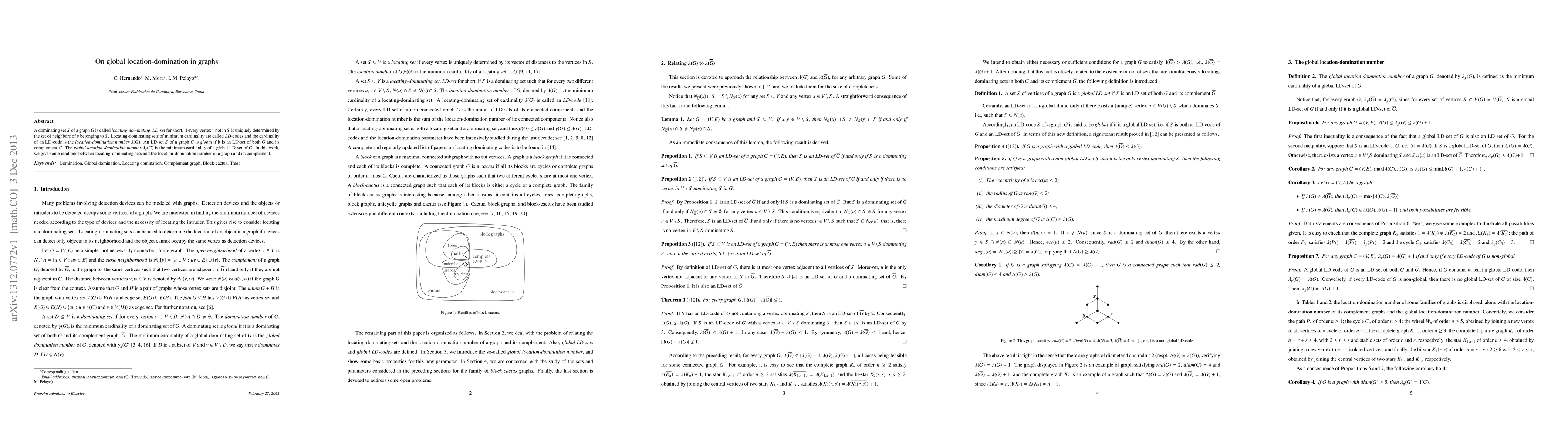 This paper explores global location-domination in graphs, focusing on locating-dominating sets that simultaneously dominate both a graph and its complement, providing new insights into the relationship between these sets and the location-domination number.