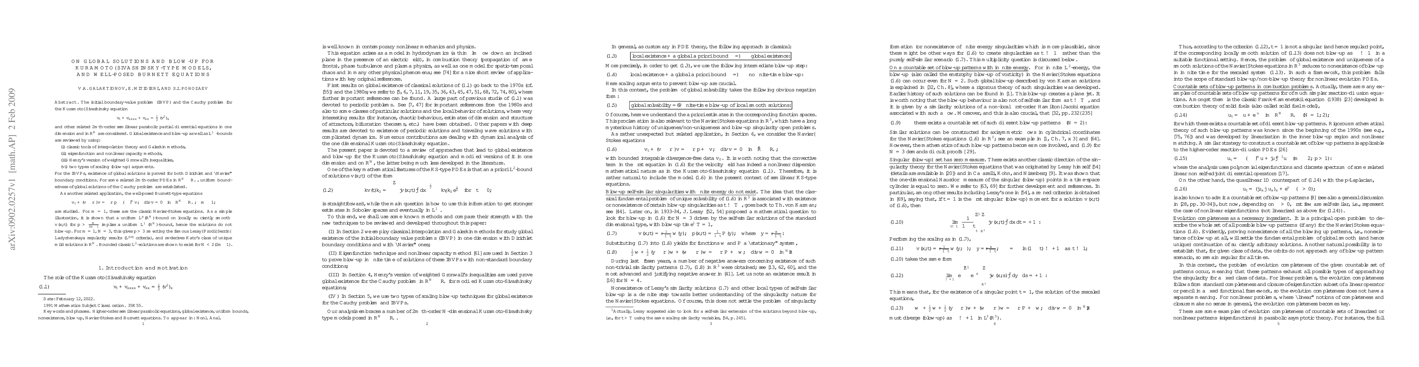 The initial boundary-value problem (IBVP) and the Cauchy problem for the Kuramoto--Sivashinsky equation and other related $2m$th-order semilinear parabolic partial differential equations in one and N dimensions are considered. Global existence and blow-up as well as uniform bounds are reviewed by using: (i) classic tools of interpolation theory and Galerkin methods, (ii) eigenfunction and nonlinear capacity methods, (iii) Henry's version of weighted Gronwall's inequalities, and (vi) two types of scaling (blow-up) arguments. For the IBVPs, existence of global solutions is proved for both Dirichlet and "Navier" boundary conditions. For some related higher-order PDEs in N dimensions uniform boundedness of global solutions of the Cauchy problem are established. As another related application, the well-posed Burnett-type equations, which are a higher-order extension of the classic Navier-Stokes equations, are studied. As a simple illustration, a generalization of the famous Leray-Prodi-Serrin-Ladyzhenskaya regularity results is obtained.