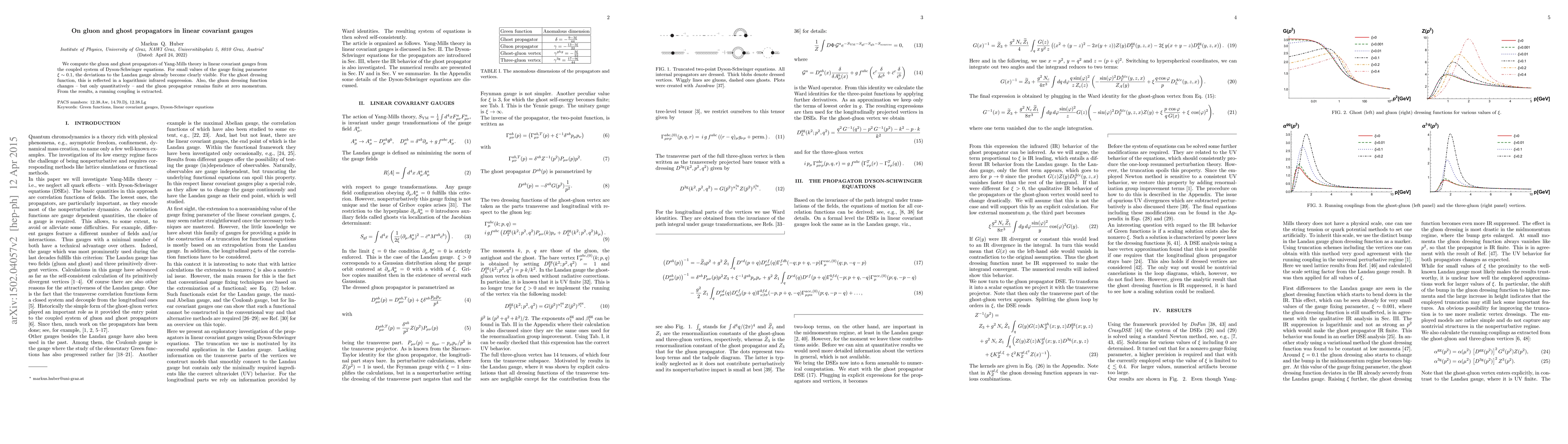 This paper computes the gluon and ghost propagators in linear covariant gauges using Dyson-Schwinger equations, revealing deviations from the Landau gauge for small gauge fixing parameters. The ghost dressing function shows logarithmic infrared suppression, while the gluon propagator remains finite at zero momentum, leading to the extraction of a running coupling.