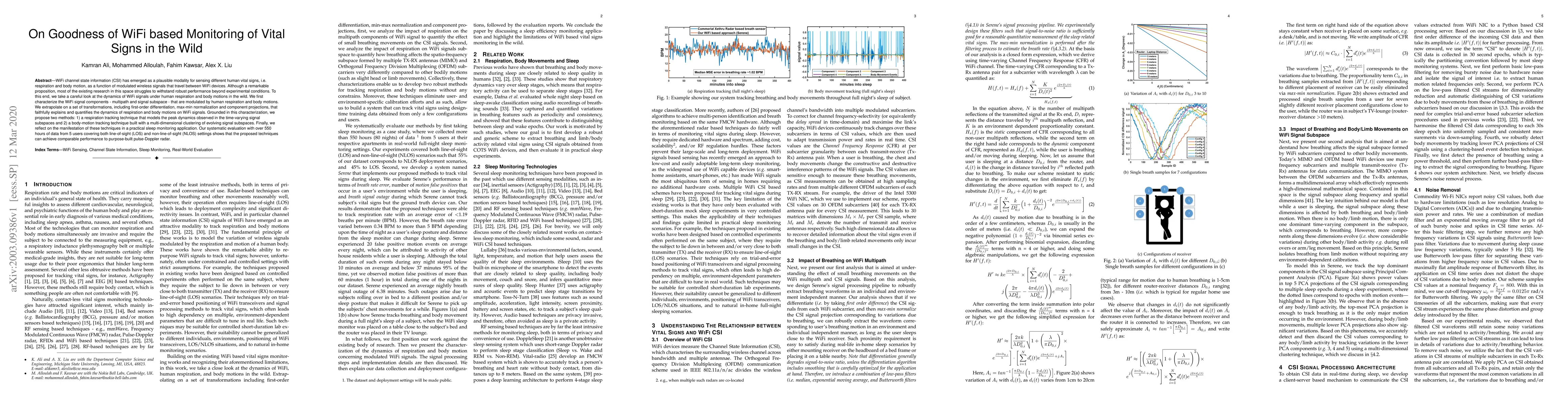 This paper investigates the use of WiFi channel state information (CSI) to monitor human vital signs, specifically respiration and body motion, in real-world settings. It proposes two methods for tracking these signs based on signal transformations and demonstrates their effectiveness through a sleep monitoring application, achieving performance comparable to radar systems.