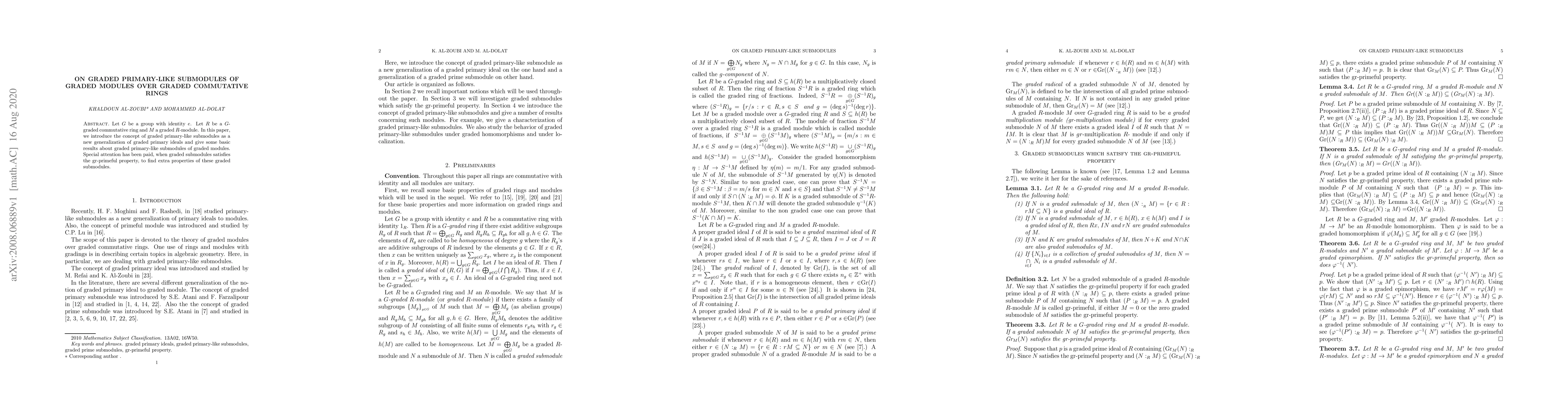 This paper introduces graded primary-like submodules as a generalization of graded primary ideals in the context of $G$-graded commutative rings and graded modules. It explores basic properties and special cases where these submodules satisfy the gr-primeful property, revealing additional characteristics.