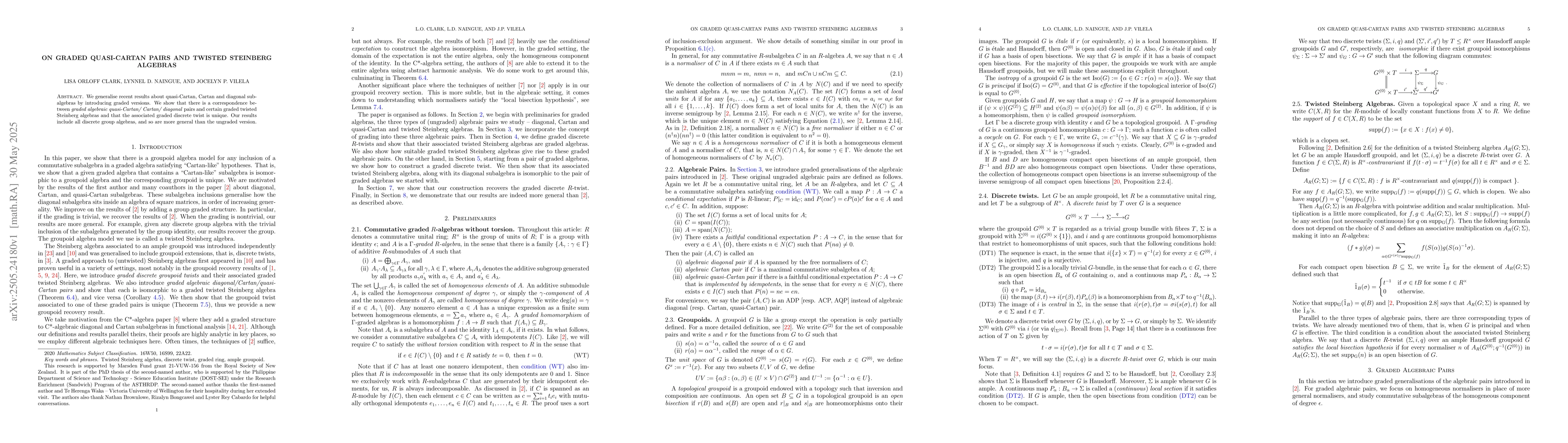This research introduces graded versions of quasi-Cartan, Cartan, and diagonal subalgebras, establishing a correspondence with specific graded twisted Steinberg algebras. It proves the uniqueness of the associated graded discrete twist, broadening the scope to include all discrete group algebras, thus surpassing the ungraded version's generality.