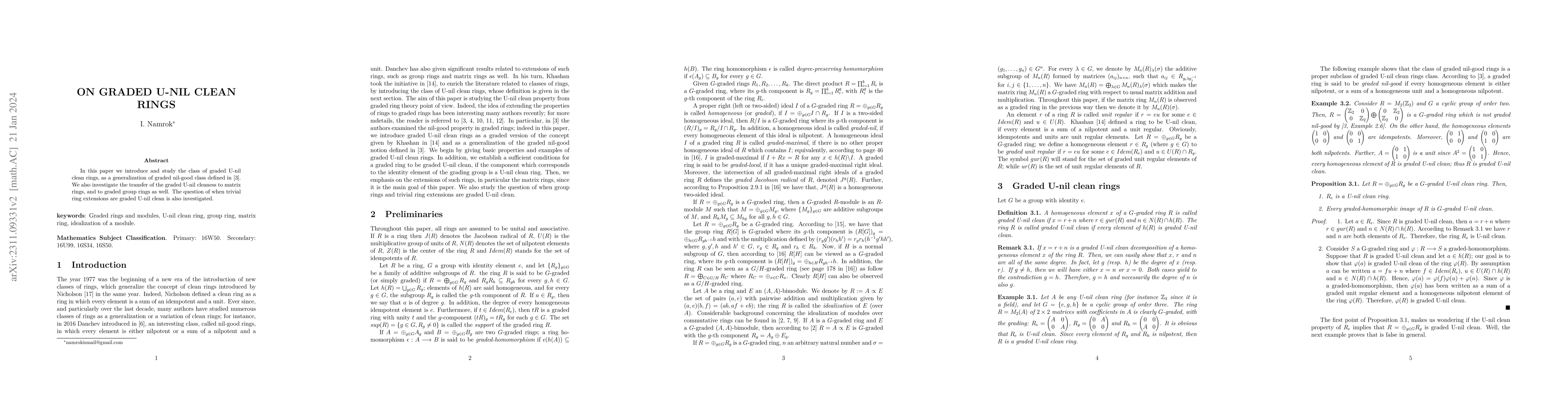This paper explores graded U-nil clean rings, extending the concept of graded nil-good rings, and examines how these properties transfer to matrix rings and graded group rings. It also investigates conditions under which trivial ring extensions maintain graded U-nil cleanliness.