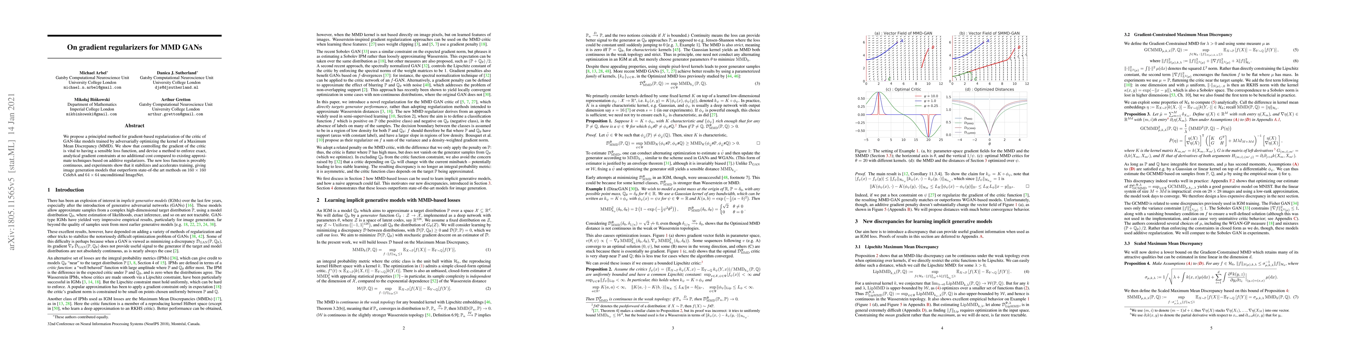 We propose a principled method for gradient-based regularization of the critic of GAN-like models trained by adversarially optimizing the kernel of a Maximum Mean Discrepancy (MMD). We show that controlling the gradient of the critic is vital to having a sensible loss function, and devise a method to enforce exact, analytical gradient constraints at no additional cost compared to existing approximate techniques based on additive regularizers. The new loss function is provably continuous, and experiments show that it stabilizes and accelerates training, giving image generation models that outperform state-of-the art methods on $160 \times 160$ CelebA and $64 \times 64$ unconditional ImageNet.