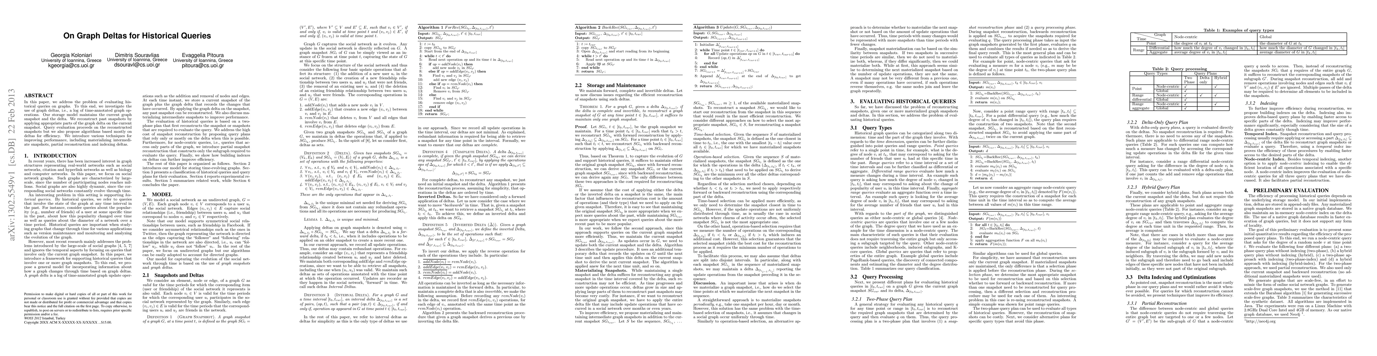 This paper explores the use of graph deltas to efficiently evaluate historical queries on evolving graphs. It proposes algorithms that utilize delta logs for query evaluation, alongside techniques like materializing snapshots and indexing to enhance performance.