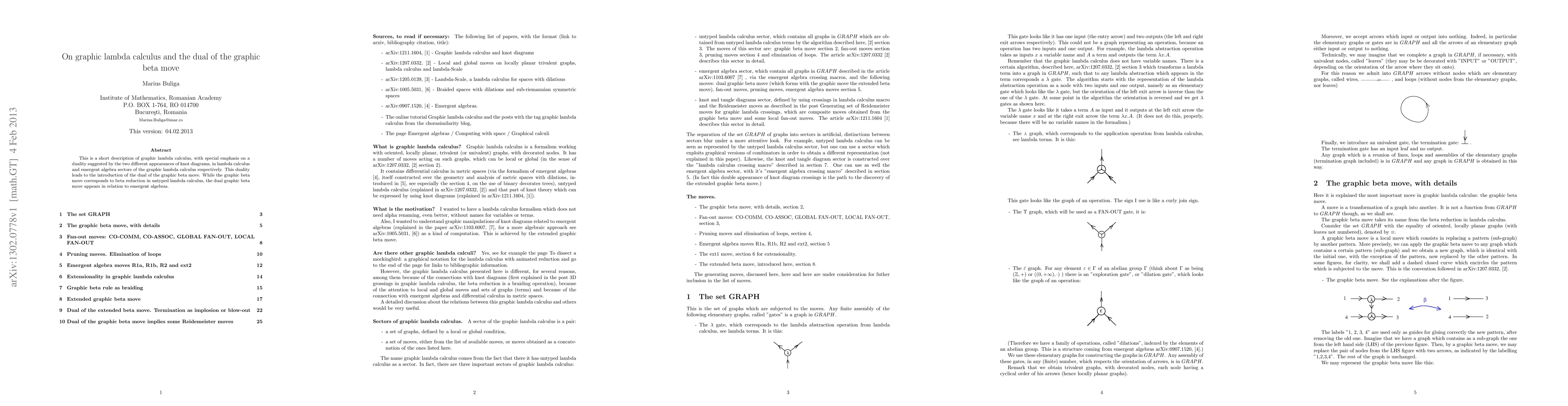This paper explores graphic lambda calculus and highlights the dual nature of the graphic beta move, which parallels beta reduction in untyped lambda calculus while also relating to emergent algebras through a suggested duality.