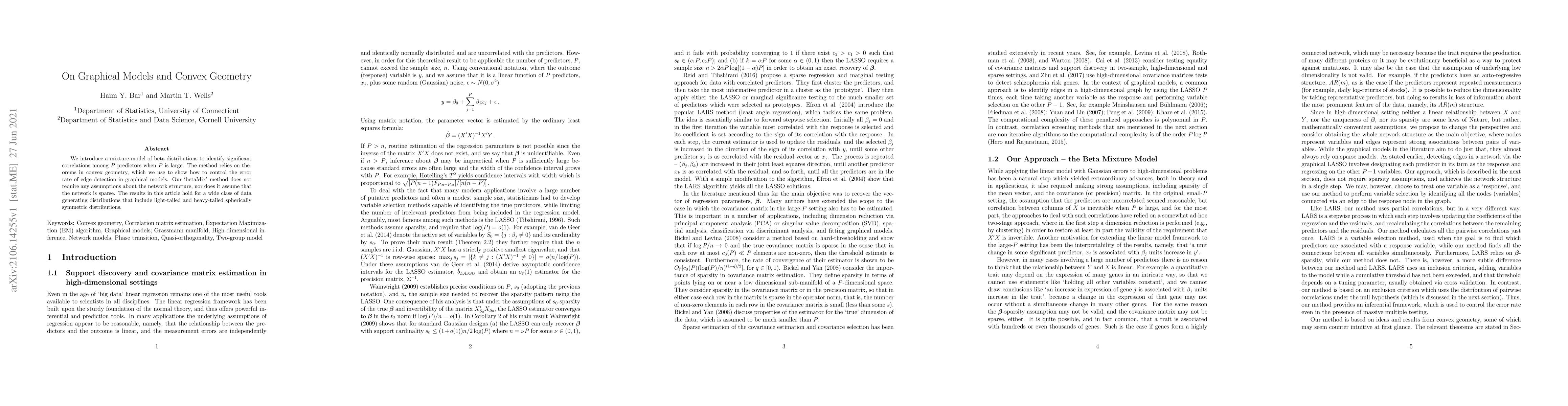 We introduce a mixture-model of beta distributions to identify significant correlations among $P$ predictors when $P$ is large. The method relies on theorems in convex geometry, which we use to show how to control the error rate of edge detection in graphical models. Our `betaMix' method does not require any assumptions about the network structure, nor does it assume that the network is sparse. The results in this article hold for a wide class of data generating distributions that include light-tailed and heavy-tailed spherically symmetric distributions.