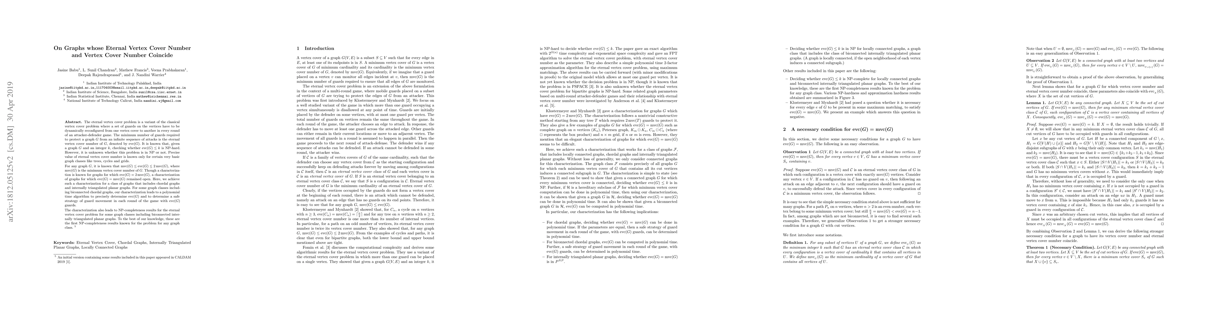 This paper characterizes graphs where the eternal vertex cover number coincides with the vertex cover number, providing a polynomial time algorithm for determining this number for certain classes like chordal graphs. It also establishes the first NP-completeness results for the eternal vertex cover problem for specific graph classes.
