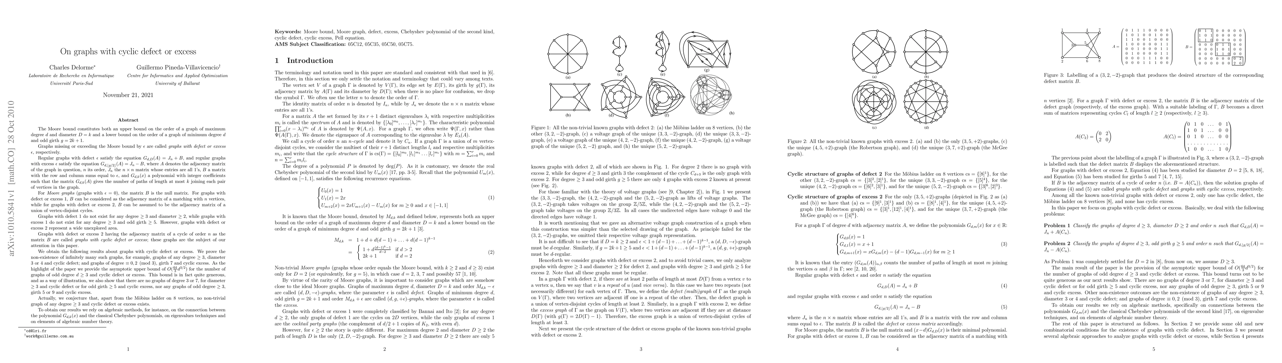 This paper explores graphs with cyclic defect or excess, focusing on those that deviate from the Moore bound by 2. The authors prove the non-existence of infinitely many such graphs and provide an asymptotic upper bound of $O(\frac{64}3d^{3/2})$ for their count, while conjecture that no non-trivial graphs of degree $d\ge3$ exist beyond the M\"obius ladder on 8 vertices.