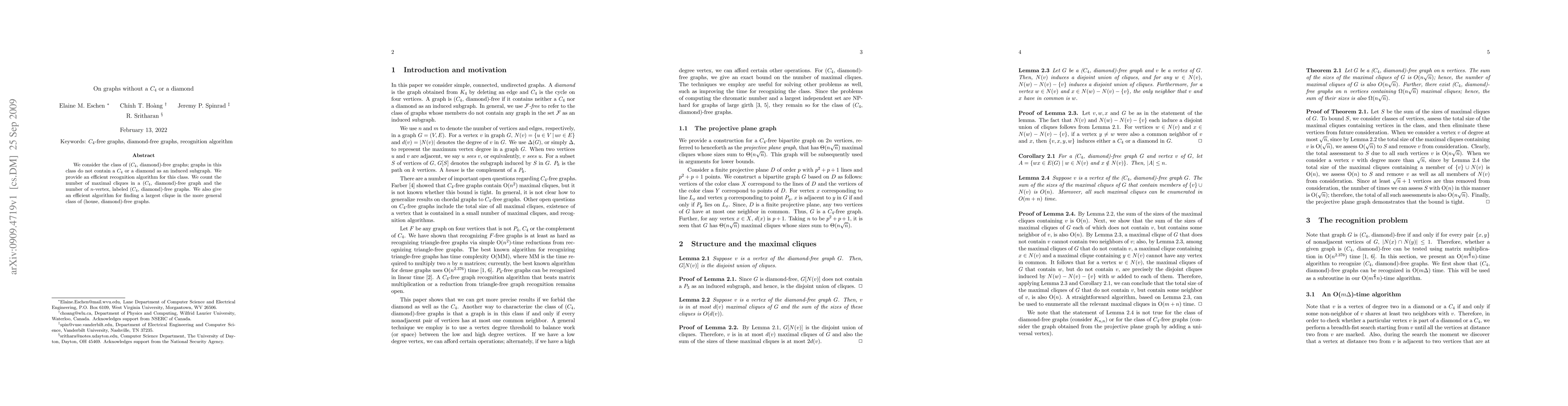We consider the class of (C4, diamond)-free graphs; graphs in this class do not contain a C4 or a diamond as an induced subgraph. We provide an efficient recognition algorithm for this class. We count the number of maximal cliques in a (C4, diamond)-free graph and the number of n-vertex, labeled (C4, diamond)-free graphs. We also give an efficient algorithm for finding a largest clique in the more general class of (house, diamond)-free graphs.