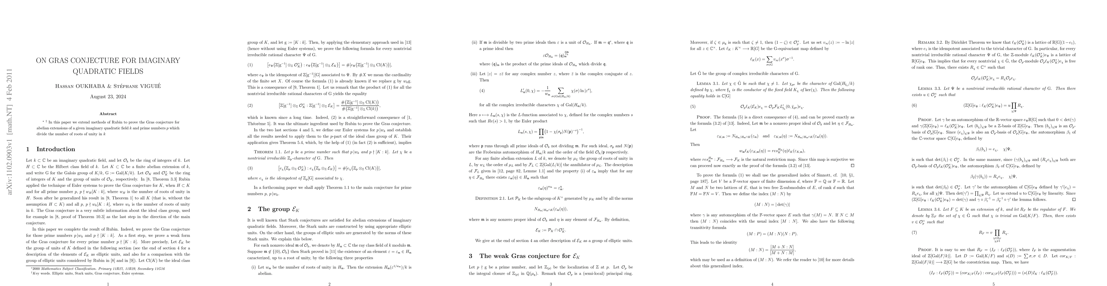 Summary: This paper utilizes Rubin's methods to prove the Gras conjecture for abelian extensions of imaginary quadratic fields, specifically focusing on primes dividing the number of roots of unity in the field. The result extends the conjecture's validity to these extensions.