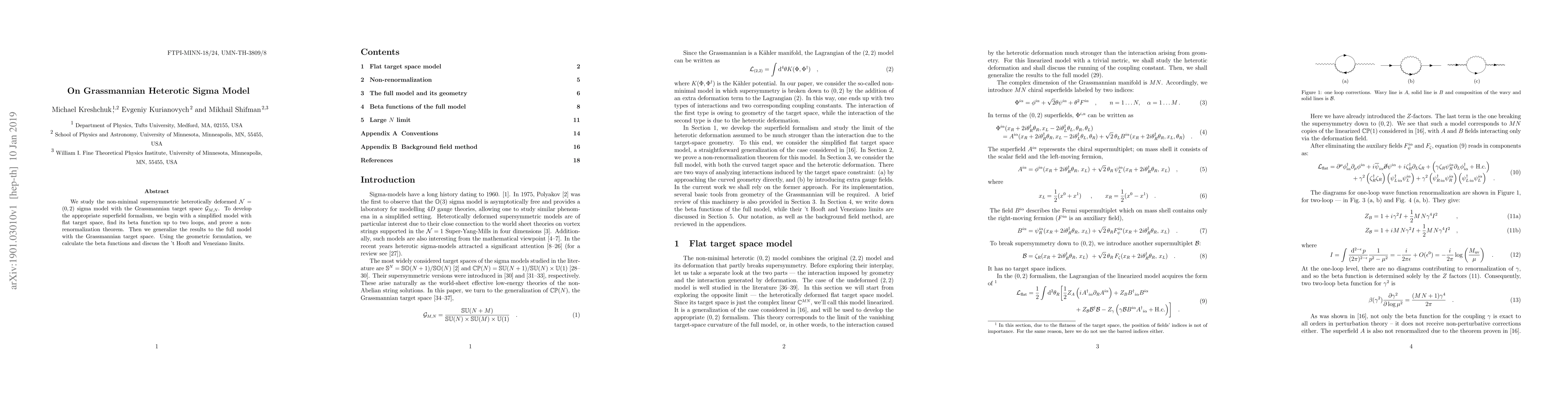 We study the non-minimal supersymmetric heterotically deformed $\mathcal{N}=(0,2)$ sigma model with the Grassmannian target space $\mathcal{G}_{M,N}$. To develop the appropriate superfield formalism, we begin with a simplified model with flat target space, find its beta function up to two loops, and prove a non-renormalization theorem. Then we generalize the results to the full model with the Grassmannian target space. Using the geometric formulation, we calculate the beta functions and discuss the 't Hooft and Veneziano limits.