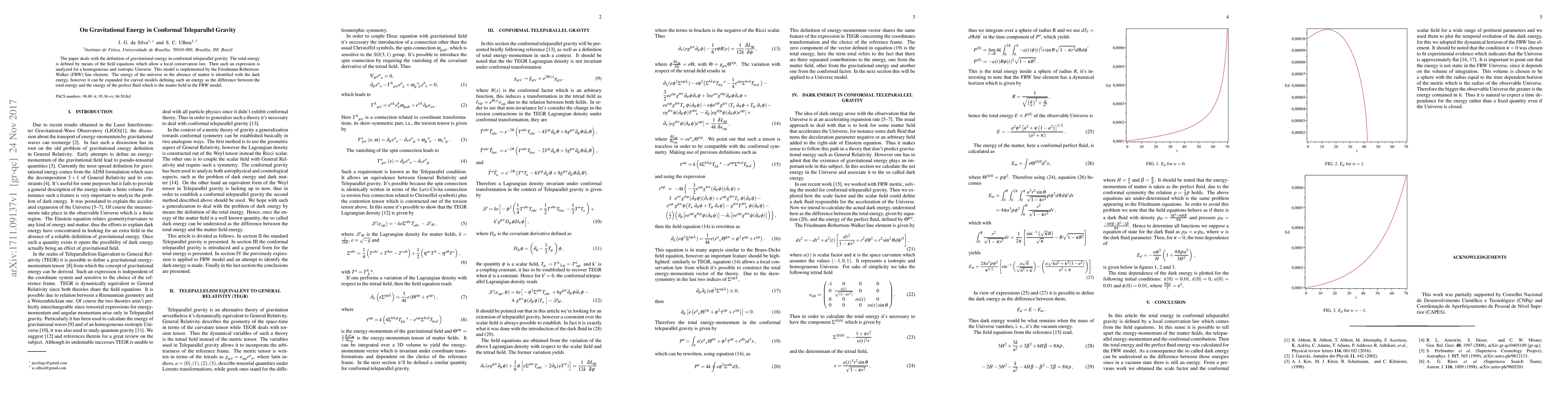 The paper deals with the definition of gravitational energy in conformal teleparallel gravity. The total energy is defined by means of the field equations which allow a local conservation law. Then such an expression is analyzed for a homogeneous and isotropic Universe. This model is implemented by the Friedmann-Robertson-Walker (FRW) line element. The energy of the universe in the absence of matter is identified with the dark energy, however it can be expanded for curved models defining such an energy as the difference between the total energy and the energy of the perfect fluid which is the matter field in the FRW model.
