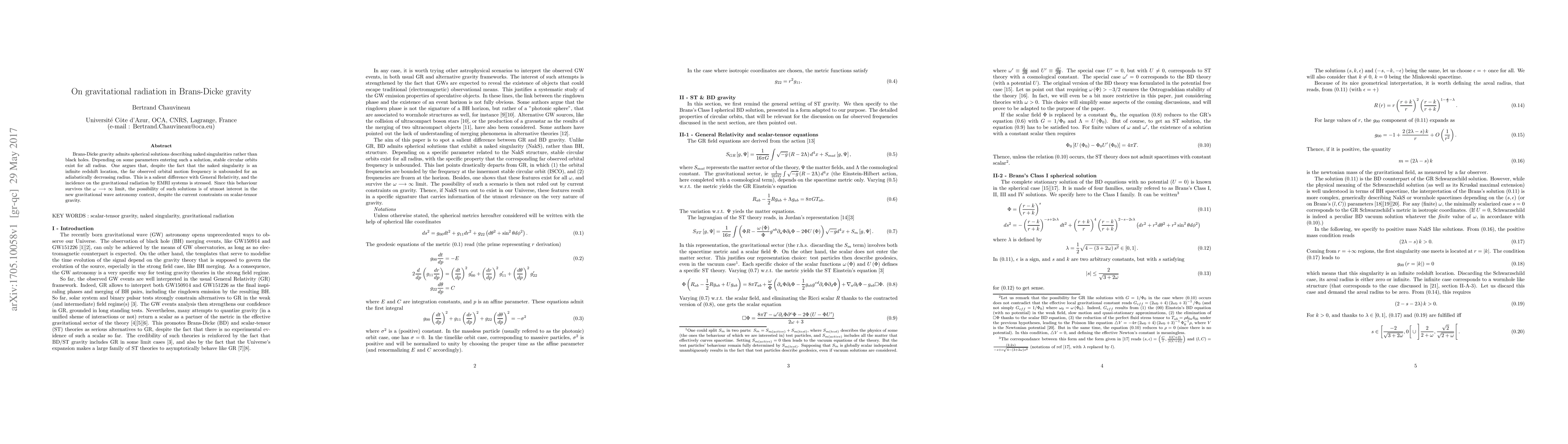 Brans-Dicke gravity admits spherical solutions describing naked singularities rather than black holes. Depending on some parameters entering such a solution, stable circular orbits exist for all radius. One argues that, despite the fact that the naked singularity is an infinite redshift location, the far observed orbital motion frequency is unbounded for an adiabatically decreasing radius. This is a salient difference with General Relativity, and the incidence on the gravitational radiation by EMRI systems is stressed. Since this behaviour survives the infinite omega limit, the possibility of such solutions is of utmost interest in the new gravitational wave astronomy context, despite the current constraints on scalar-tensor gravity.