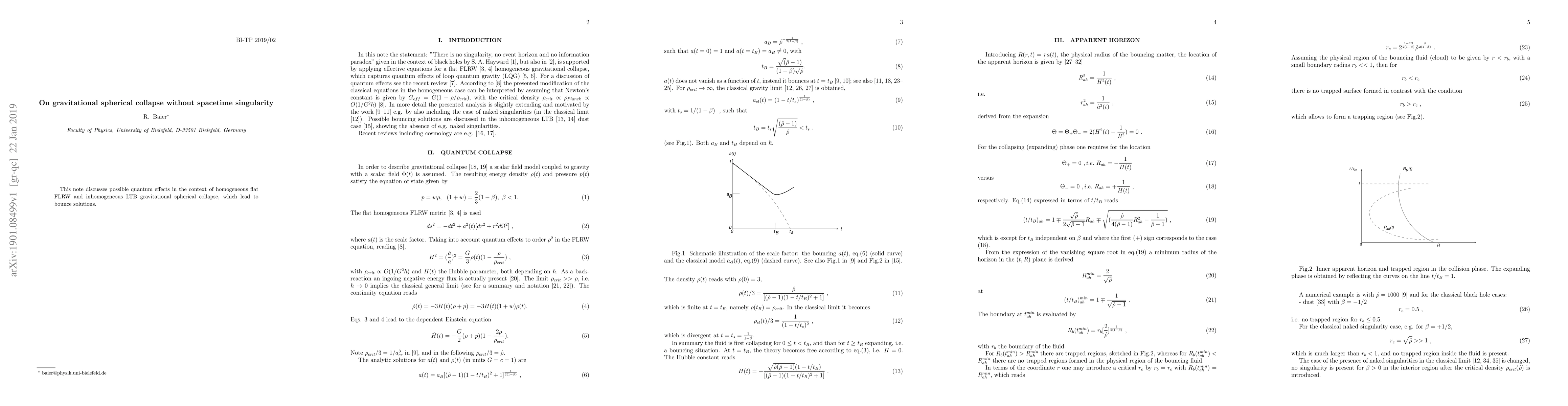 Summary: This paper explores quantum effects in gravitational spherical collapse scenarios, proposing that they can lead to bounce solutions, thereby avoiding spacetime singularities in both homogeneous FLRW and inhomogeneous LTB models.