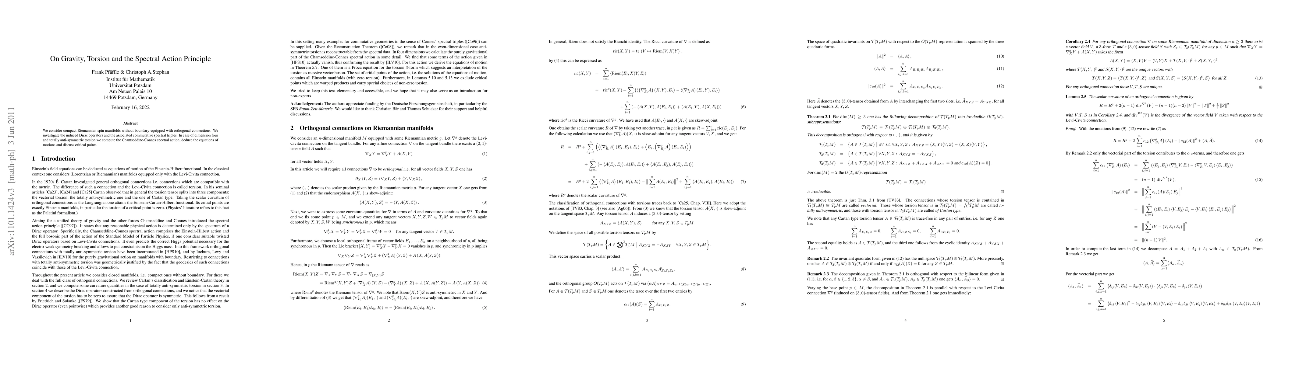 This paper explores compact Riemannian spin manifolds with orthogonal connections, focusing on Dirac operators and commutative spectral triples, and calculates the Chamseddine-Connes spectral action in four dimensions with anti-symmetric torsion, deriving associated equations of motion and critical points.