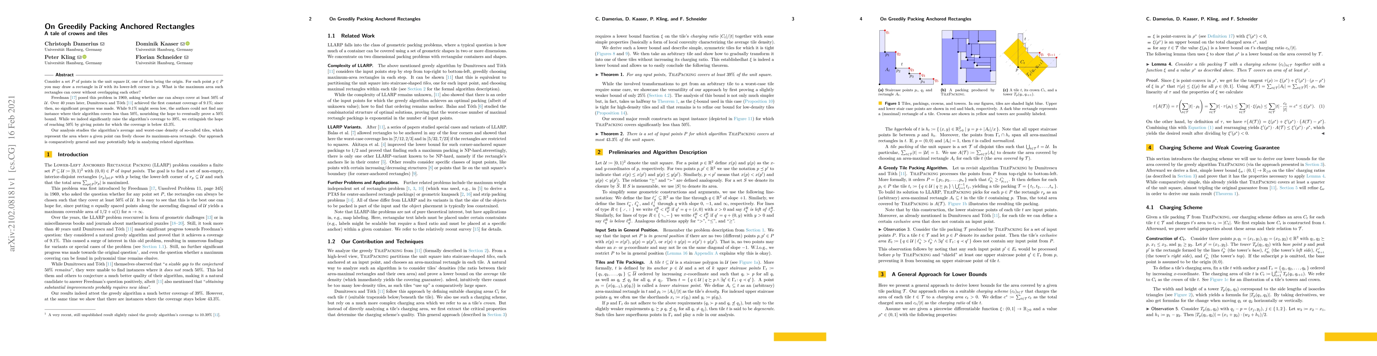 Consider a set P of points in the unit square U, one of them being the origin. For each point p in P you may draw a rectangle in U with its lower-left corner in p. What is the maximum area such rectangles can cover without overlapping each other? Freedman [1969] posed this problem in 1969, asking whether one can always cover at least 50% of U. Over 40 years later, Dumitrescu and T\'oth [2011] achieved the first constant coverage of 9.1%; since then, no significant progress was made. While 9.1% might seem low, the authors could not find any instance where their algorithm covers less than 50%, nourishing the hope to eventually prove a 50% bound. While we indeed significantly raise the algorithm's coverage to 39%, we extinguish the hope of reaching 50% by giving points for which the coverage is below 43.3%. Our analysis studies the algorithm's average and worst-case density of so-called tiles, which represent the area where a given point can freely choose its maximum-area rectangle. Our approachis comparatively general and may potentially help in analyzing related algorithms.