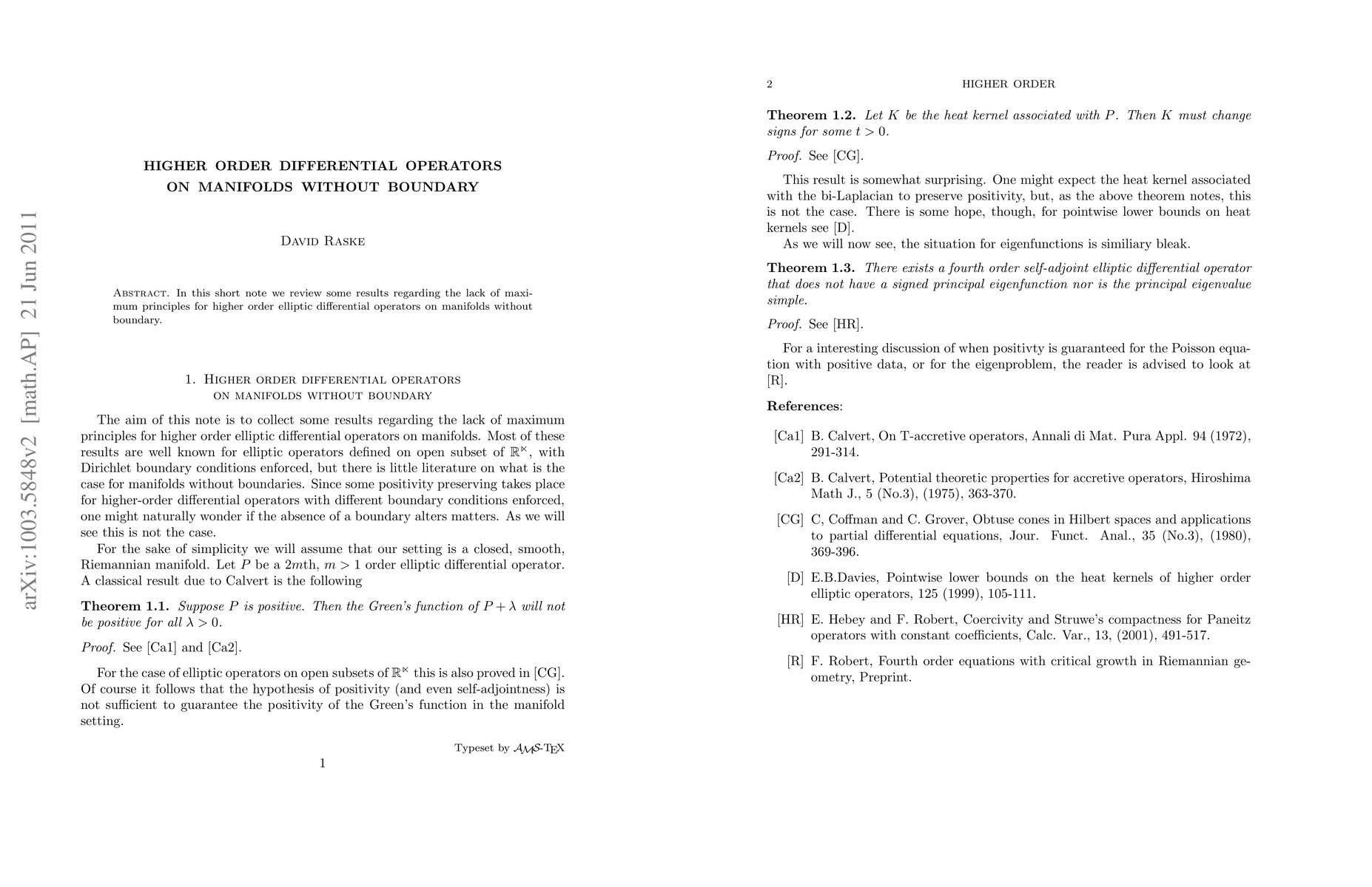 Summary: This paper reviews properties of elliptic differential operators on Riemannian manifolds, focusing on positive, self-adjoint, elliptic pseudo-differential operators and their associated Green's functions on closed manifolds. The discussion highlights fundamental aspects of these operators and their Green's functions.