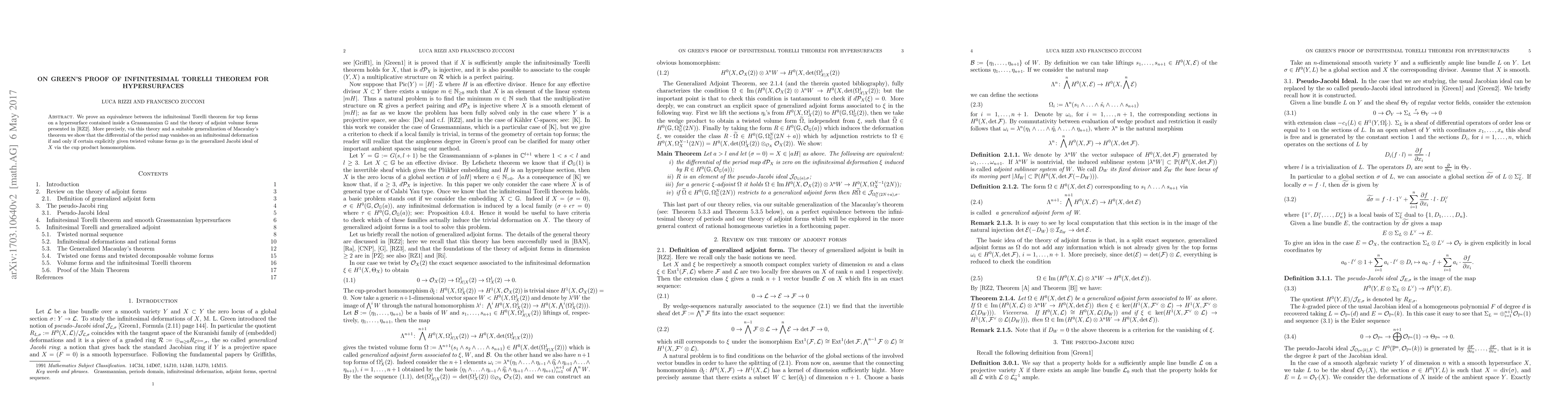 This paper proves an equivalence between a theorem for hypersurfaces and a theory of adjoint volume forms, linking infinitesimal deformations to specific twisted volume forms.