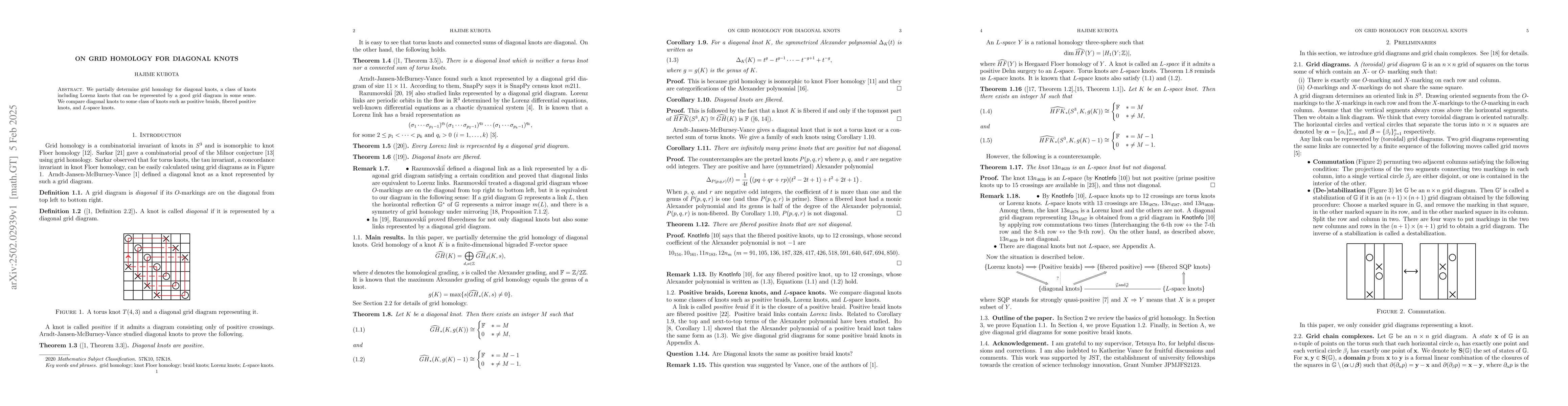 The work extends previous research on grid homology by focusing specifically on diagonal knots, revealing connections to unknotting numbers and providing new insights into their structure.
