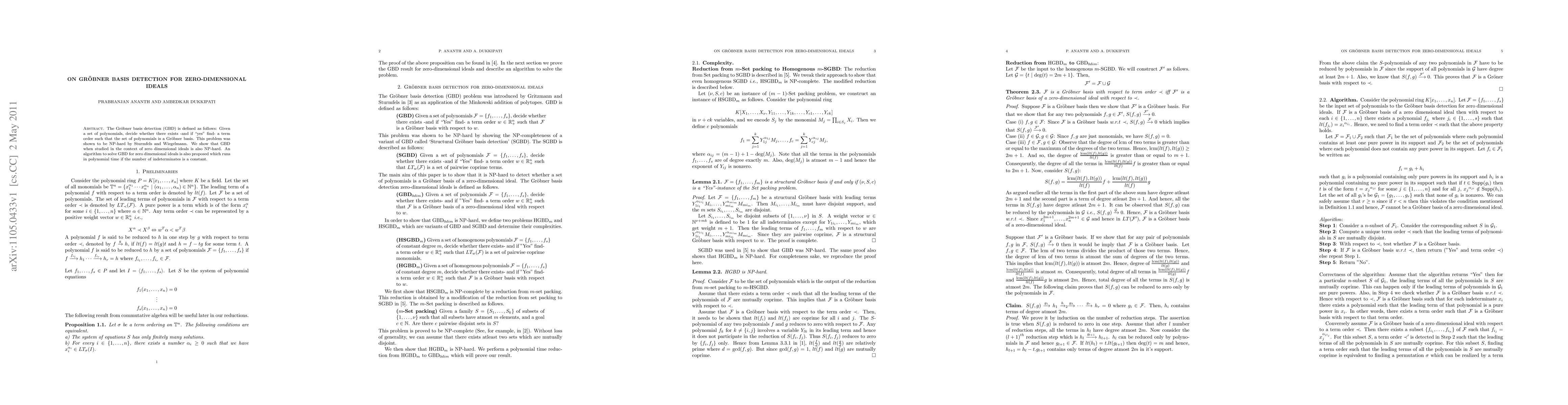 This paper demonstrates that Gröbner basis detection for zero-dimensional ideals is NP-hard, echoing the complexity found in general cases. It also proposes a polynomial-time algorithm for solving this problem when the number of indeterminates is constant.